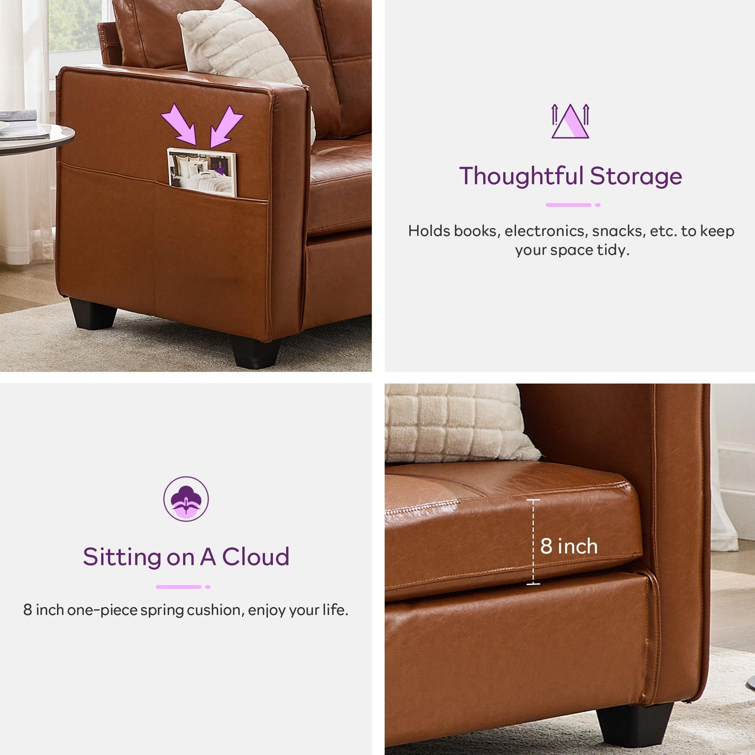 - 【Convenient Storage & Easy Maintenance】This modern cloud couch features functional side storage compartments for magazines, tablets, and everyday essentials. Made from high-quality, skin-friendly faux leather, it’s easy to clean—simply wipe down with a damp cloth. Additionally, two USB charging ports on one armrest provide a continuous power supply for gaming or streaming.