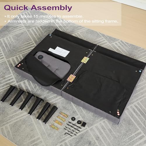 - 【Zero Fuss Assembly】We value your time, which is why our convertible sofa bed is ingeniously designed to be assembled with ease-no tools, no tears, just three steps and you're done in 15 minutes. Pro tip: The sofa legs are hidden at the bottom of the seat frame. Just give the fabric tabs a tug to find them