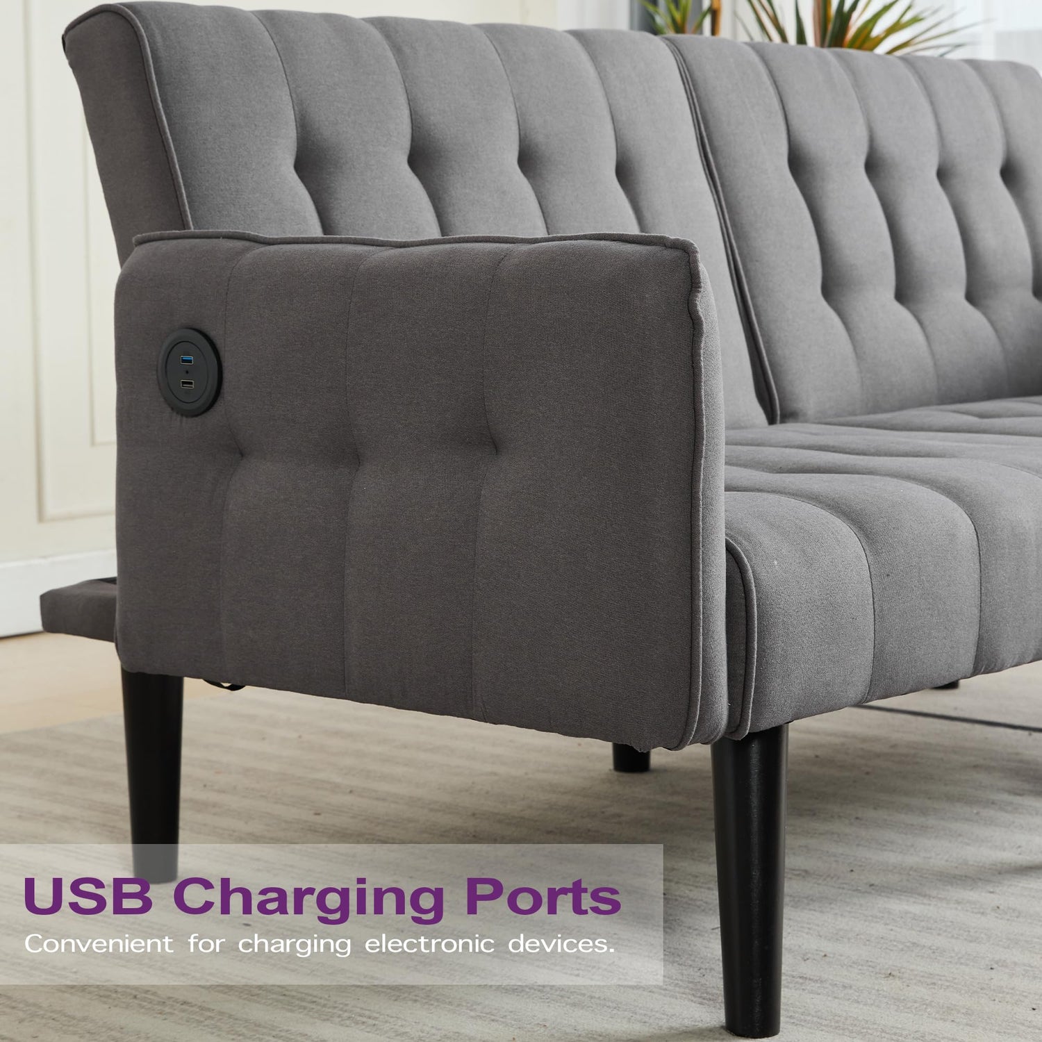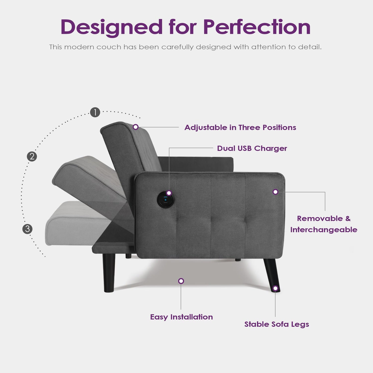 - 【Adaptable Comfort for Every Occasion】This modern sofa doubles as a folding sofa bed with a 3-position adjustable backrest that caters to all your relaxation needs. Whether it's sitting upright for work, lounging for a movie night, or lying flat for a restful sleep, our convertible sofa bed adapts at your command. Plus, those built-in USB ports mean your phone stays as charged as you are, no matter how you choose to chill