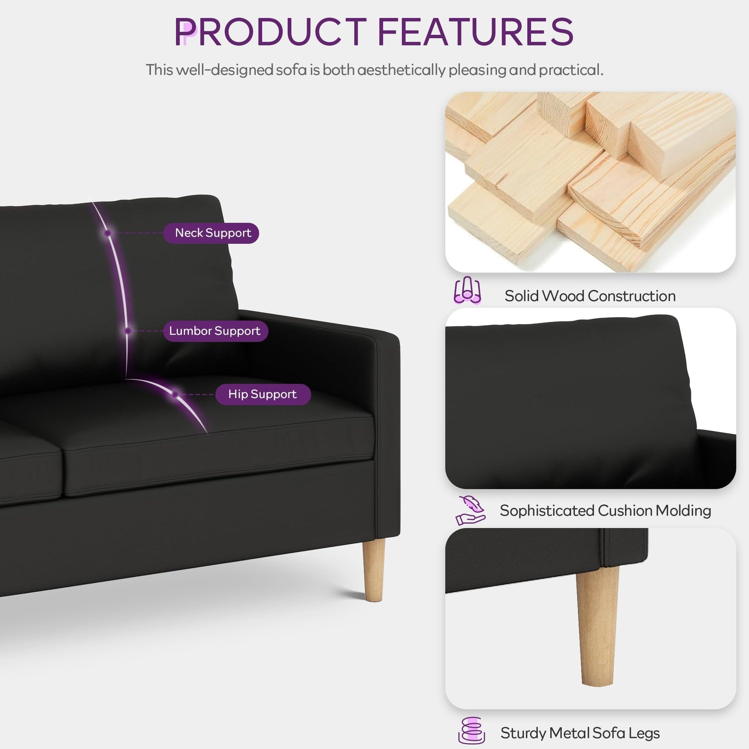 - 【Easy-Care PU Leather】Crafted from premium PU leather, this sofa offers a smooth, sophisticated look that’s also easy to maintain. Its durable, wipe-clean surface resists stains and spills, making it perfect for busy homes.