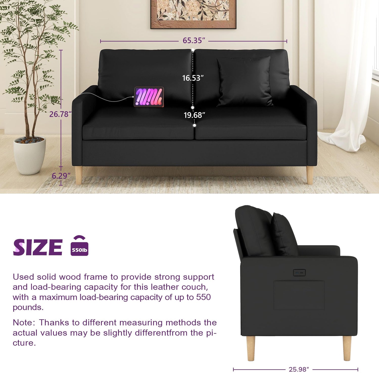 - 【Spacious & Ergonomic Comfort】Measuring 25.98 x 65.35 x 33.07 inches (depth x width x height), this 2 seater sofa comfortably accommodates 2 to 3 people. High-density foam cushions and backrests provide excellent support for extended seating, while the quality elastic springs underneath ensure stability and durability. Crafted from premium PU leather, this sofa offers a smooth, sophisticated look that’s also easy to maintain. Its durable, wipe-clean surface resists stains and spills, making it perfect for busy homes.