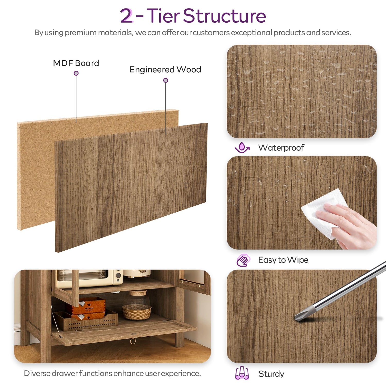 - Innovative Linen-Weave Open Drawer: The bottom open drawer of kitchen cabinet boasts a linen-weave finish, offering a stylish and practical solution for storing frequently used items. This feature adds a touch of elegance to the cupboard while keeping essentials within easy reach.