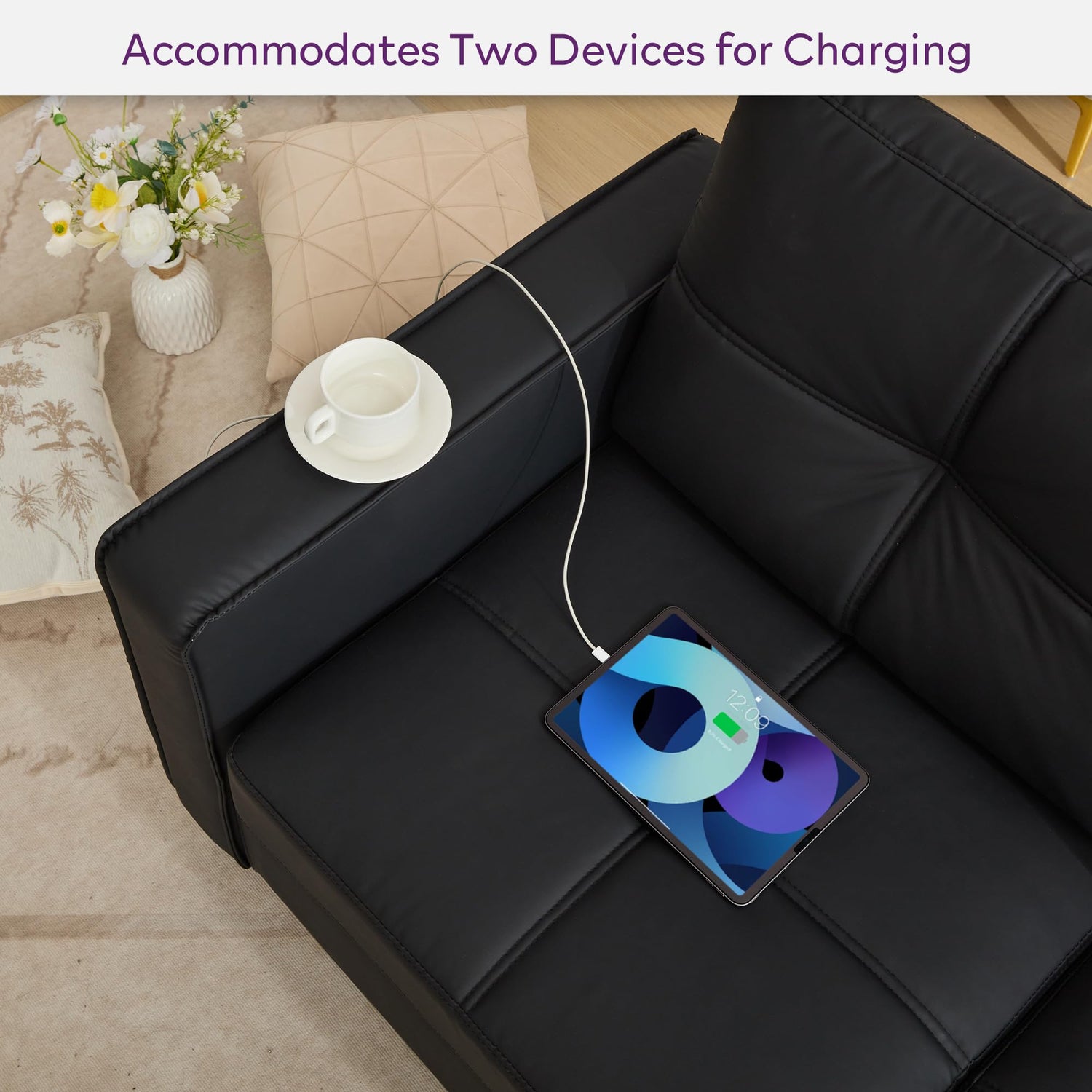 - 【Elegant Design - Perfect Contemporary Black Leather Sofa】TYBOATLE faux pu leather sofa has a quality aesthetic design. This comfortable couch is ideal for any space, with wide sofa arm shape and a highly technological USB charging feature, a sofa that is a perfect blend of modern and mid-century style that can be placed in living rooms, offices, RVs, apartments, bedroom, waiting room and more. This modern leather couch features functional side storage compartments for magazines, tablets, and everyday essentials.