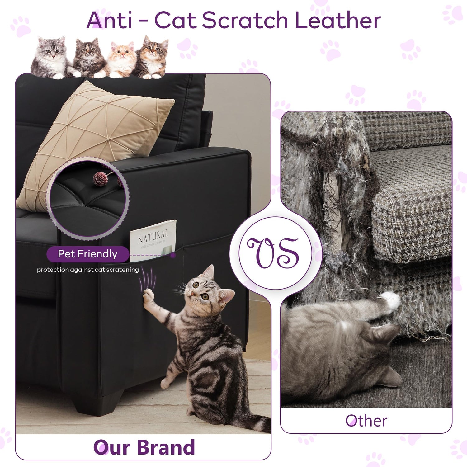 - 【Skin-friendly Leather & Solid Frame】The skin-friendly PU faux leather is selected, it’s easy to clean—simply wipe down with a damp cloth. The frame of the sofa is made of high quality solid wood and metal to ensure that every part of the sofa is strong and durable, and the cozy sofa can bear the weight of the sofa evenly. Weight-bearing capacity 700-900 lbs. The square sofa legs offer stability and strength, ensuring that this reliable and durable addition will serve you well for years to come.