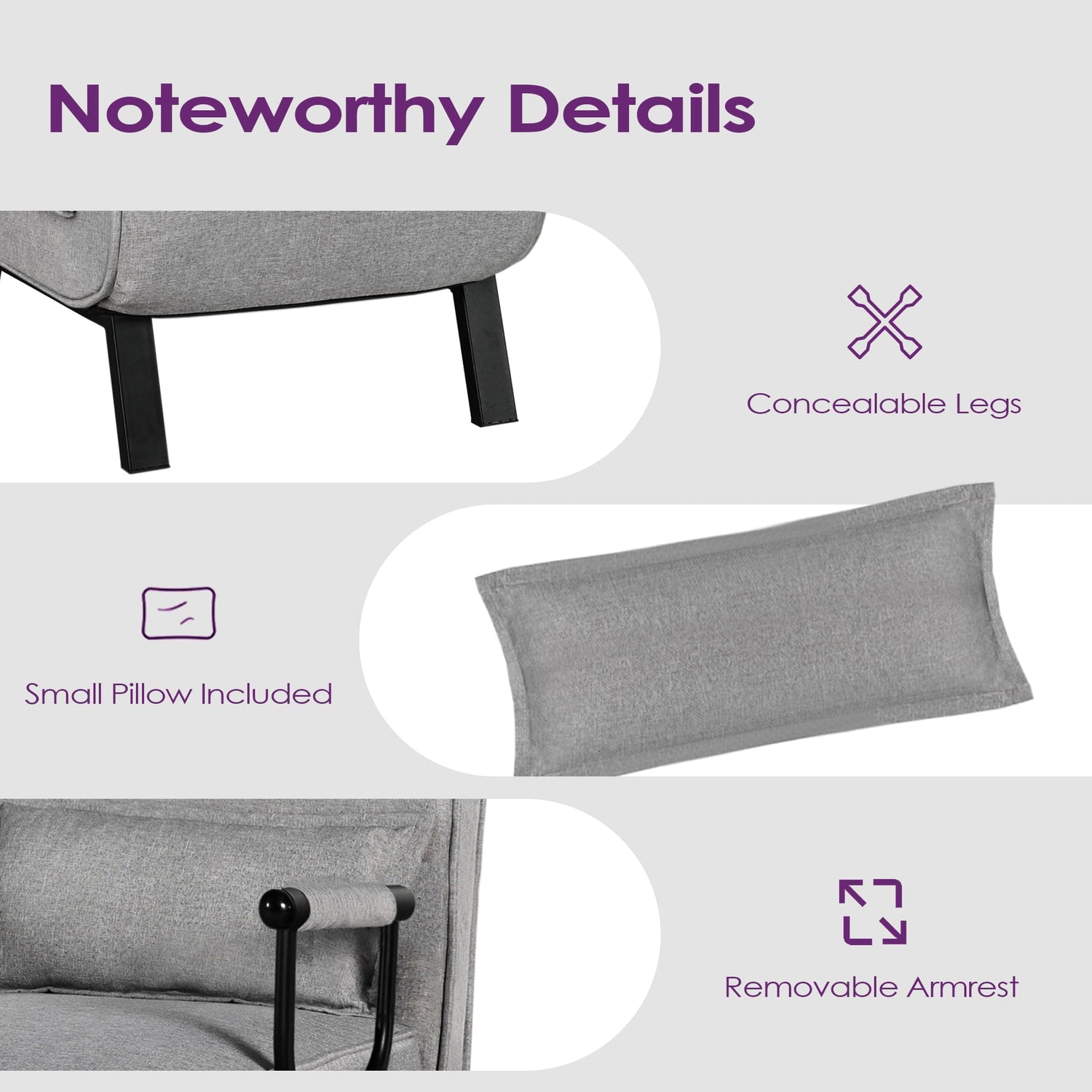 - 【Multi-scenario Use & Practical】 With compact design and minimalist look, this upholstered sleep sofa fits in living room, bedroom, apartment, and office to set up extra seating. Detachable armrests and legs make this lazy sofa super for small spaces, enjoying your relaxation space yet easily store it.