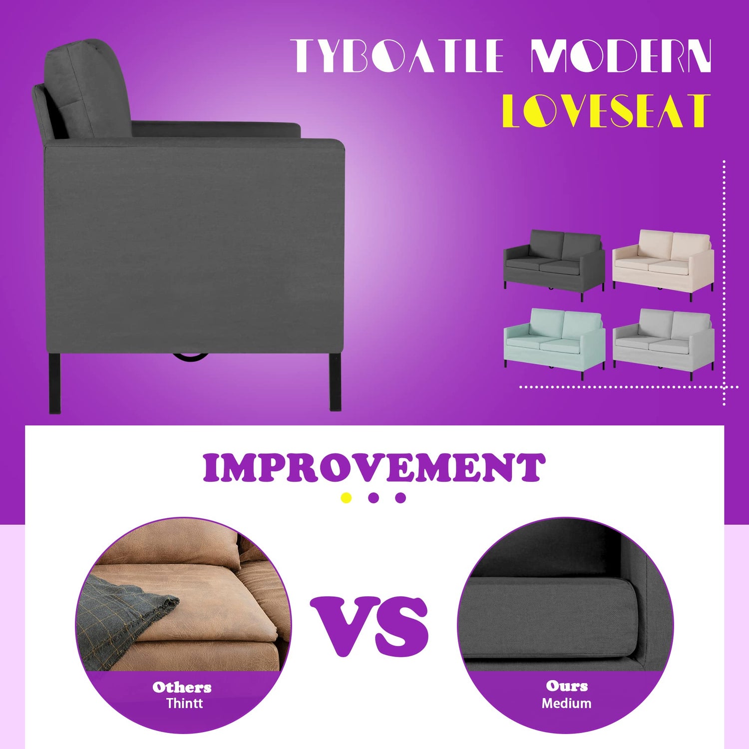 - 【SMALL MODERN LOVESEATS】The smooth and simple lines of the sofa combined with the black iron legs make the sofa modern and minimalist. This inexpensive small double sofa is the perfect choice for your temporary furniture change, available in four colors and four options for small apartment configurations, living room, office, dormitory, and bedroom furniture