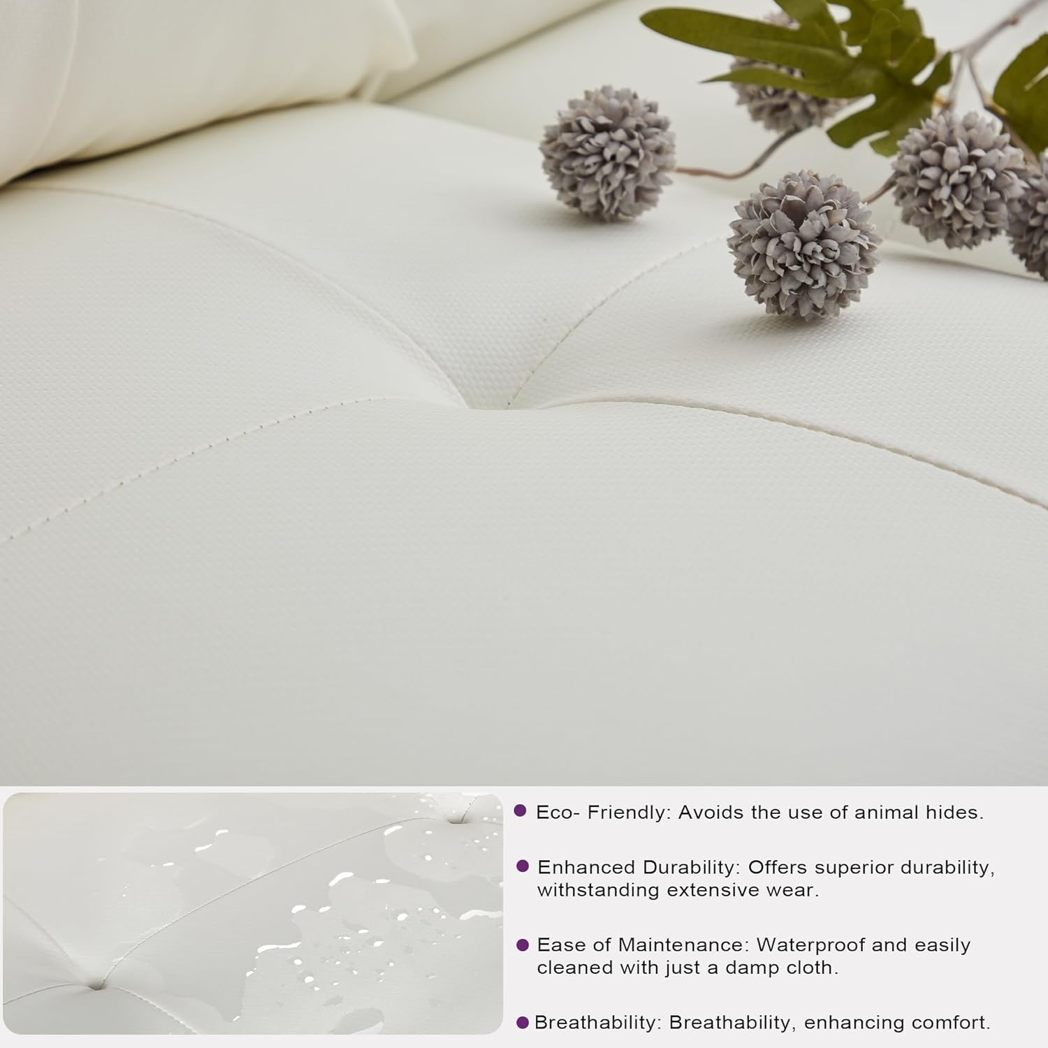 TYBOATLE Sofa Couch 61" Loveseat Couches for Living Room, White Faux Leather Couch Mid Century Modern Tufted Mini Sofa Comfy Office 2 Seat Settee Love Seat Small Couches for Small Spaces Bedroom