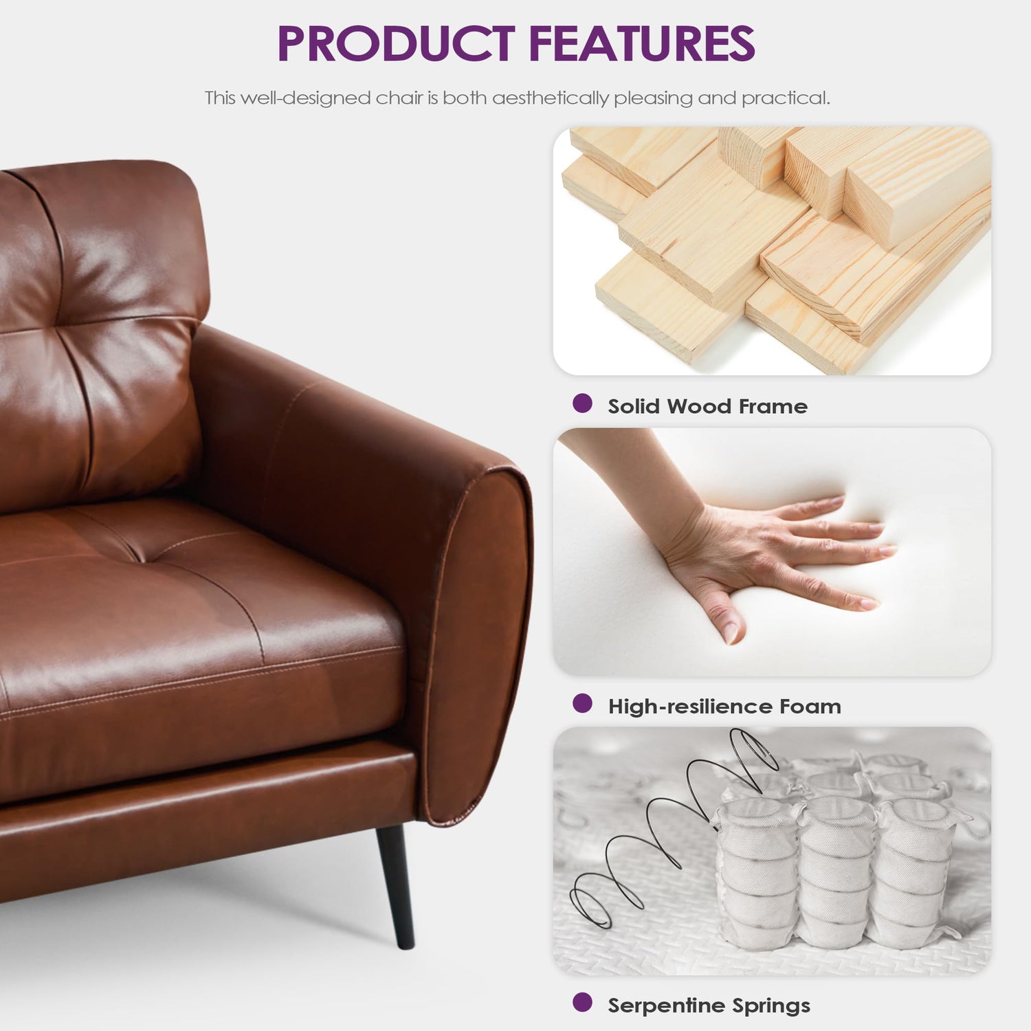 - 【Built to Last, Easy to Love】Crafted with high-quality, soft faux leather, this comfy small couch is not only comfortable but also stain-resistant. Maintenance is a breeze—simply wipe with water. The materials used are safe, odorless, and designed to prevent pilling, ensuring a long-lasting addition to your home