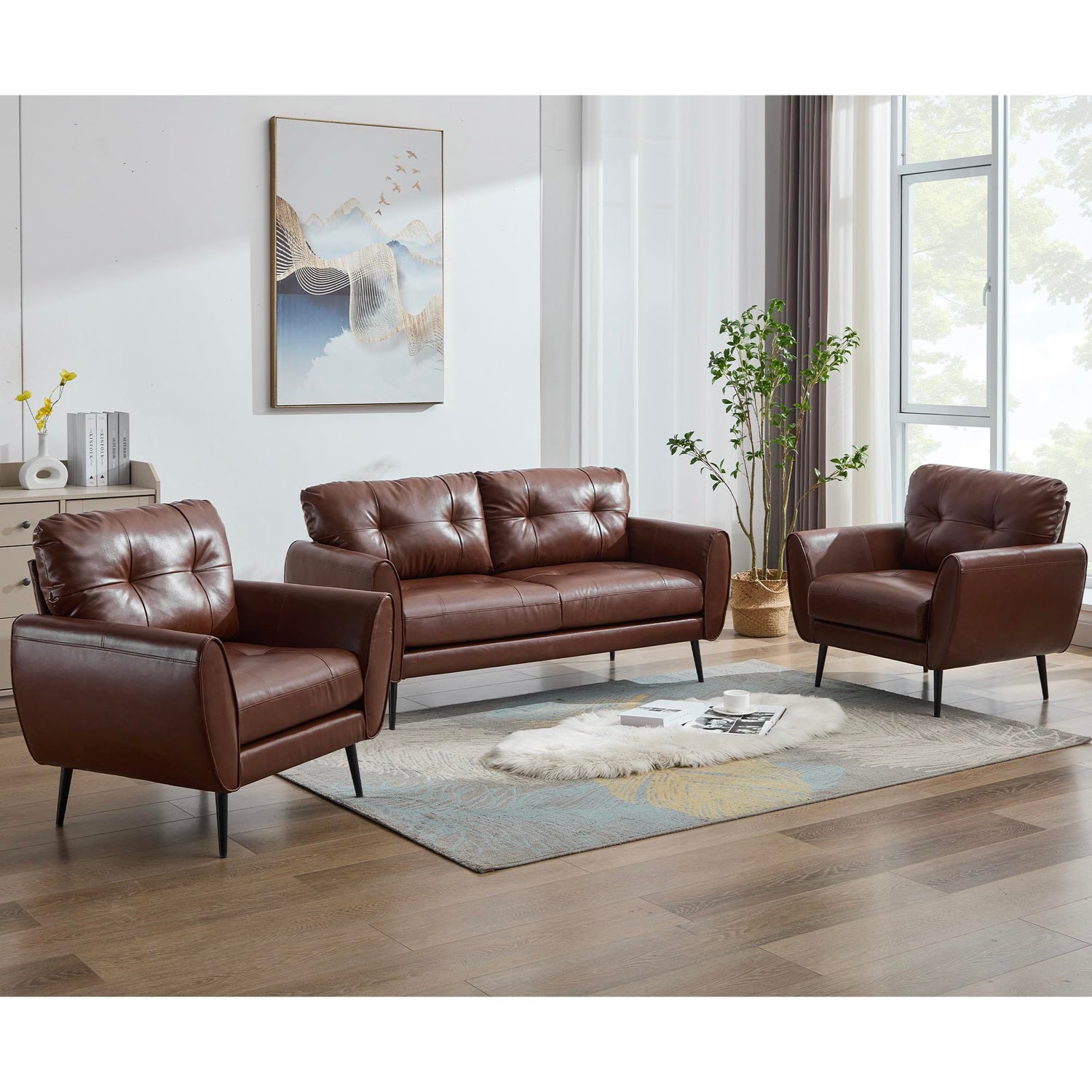 - 【Mid Century Modern Leather Loveseat】Immerse yourself in luxury with this TYBOATLE Mid Century Modern Loveseat Sofa. Featuring elegant faux leather in a rich black hue, this comfy love seat embodies the essence of mid-century modern design with its tufted stitching and smooth, sophisticated curves. Whether placed in your living room, bedroom, play room, office, or conference room, its versatile design complements any decor. Dimensions: 60.63"(L) x 27.95"(W) x 30.70"(H)