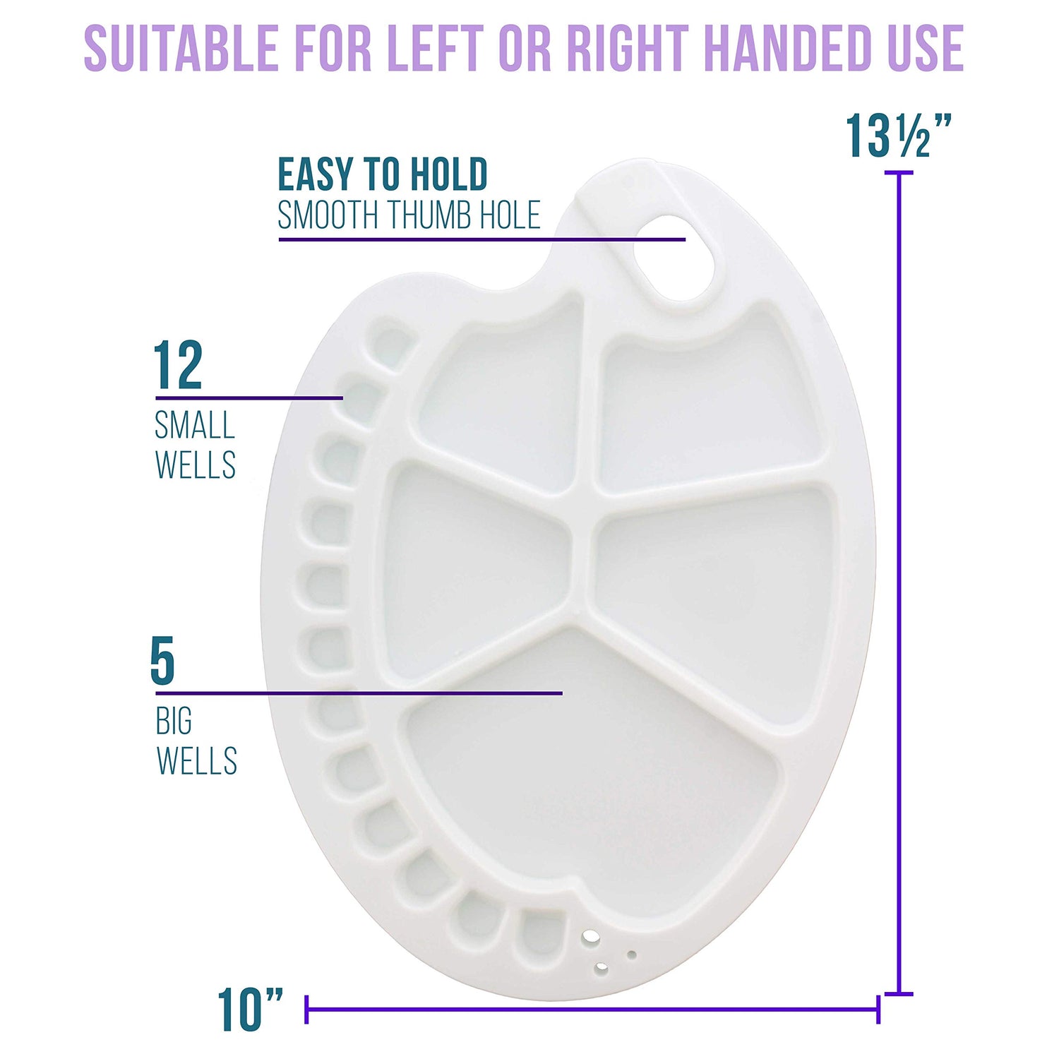 - A pack of 2 plastic artist painting palettes with 17 paint wells. Artist-friendly paint tray palettes are made of sturdy, durable, and lightweight molded plastic and include a thumb hole that makes it easy for everyone to hold while they use them. Palettes are suitable for right-handed and left-handed use.