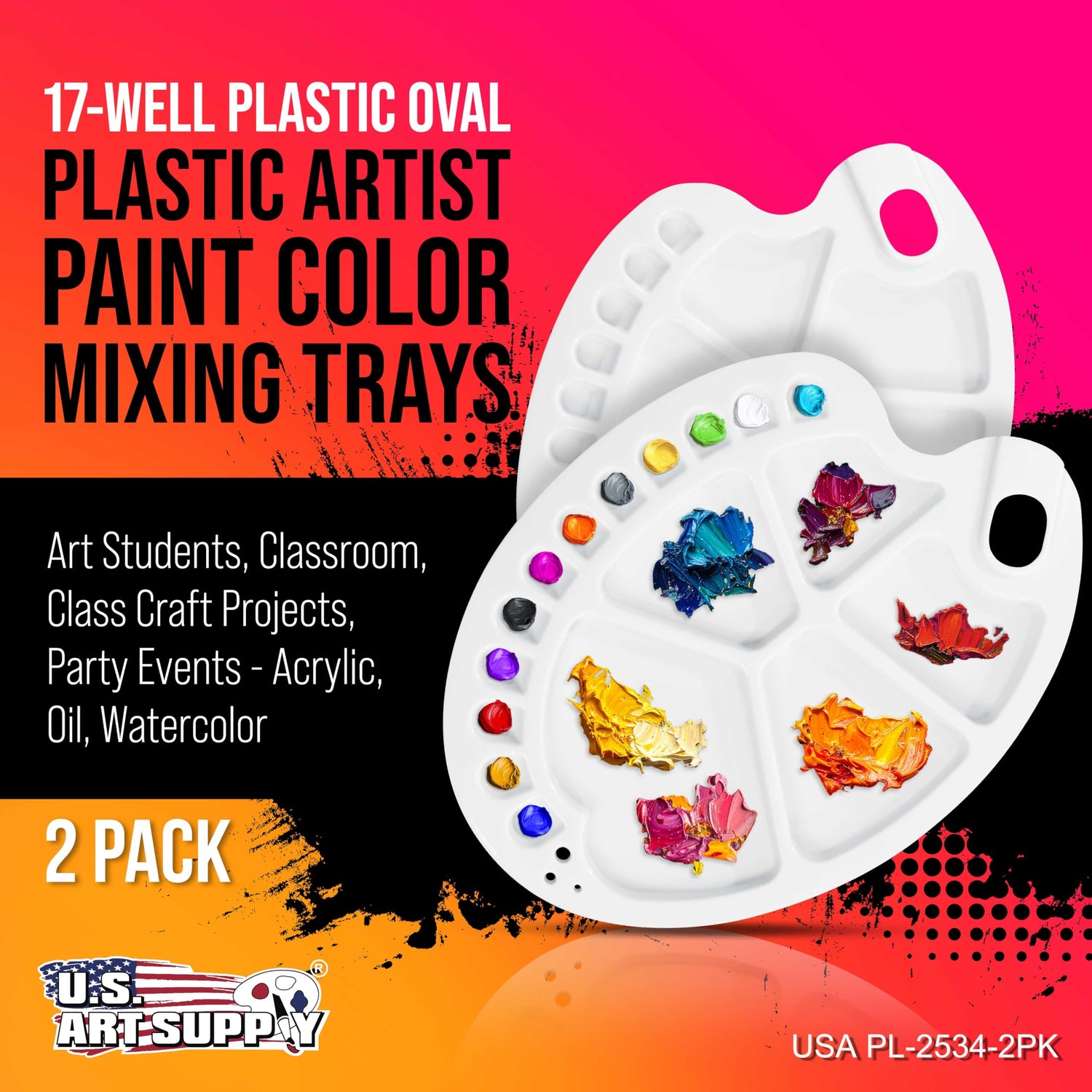 U.S. Art Supply 17-Well Artist Painting Palette (Pack of 2) - Plastic Artist Paint Color Mixing Trays - Art Students, Classroom, Class Craft Projects, Party Events - Acrylic, Oil, Watercolor