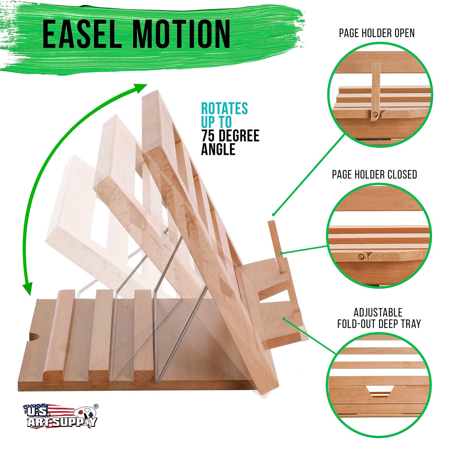 U.S. Art Supply Large Wooden Table Easel - Adjustable Incline, 2 Page Holders - Functions as Wooden Cookbook Stand, Kitchen Countertop Recipe Rack, Tablet Rest & Cook Book Holder for Kitchen Counter