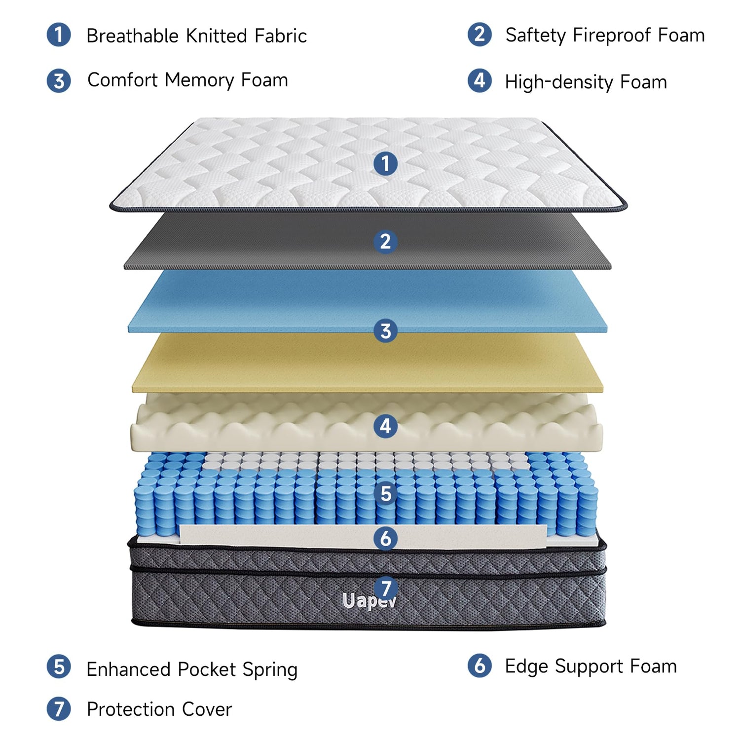 Uapev Queen Mattress,12inch Thickness Mattress in A Box,Memory Foam Hybrid Mattress,with Individual Pocket Spring for Motion Isolation & Silent Sleep,Pressure Relief,Plush Texture.