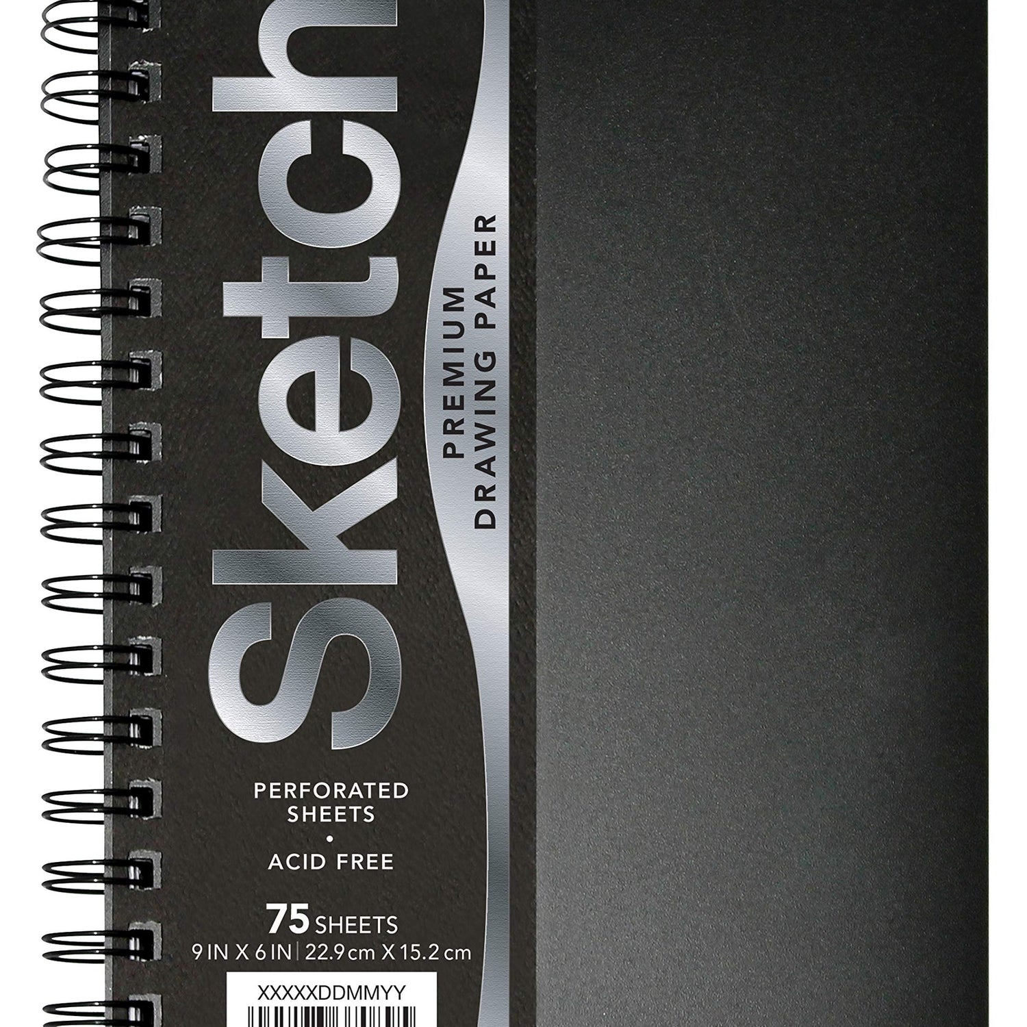 Details: Premium sketch book with a durable black poly cover and back. Each book contains 75 sheets of heavyweight, acid-free drawing paper. The spiral binding lies flat for comfortable drawing and sketching. Ideal for sketching and drawing with dry media. Sheets are perforated for final art. Acid free.
