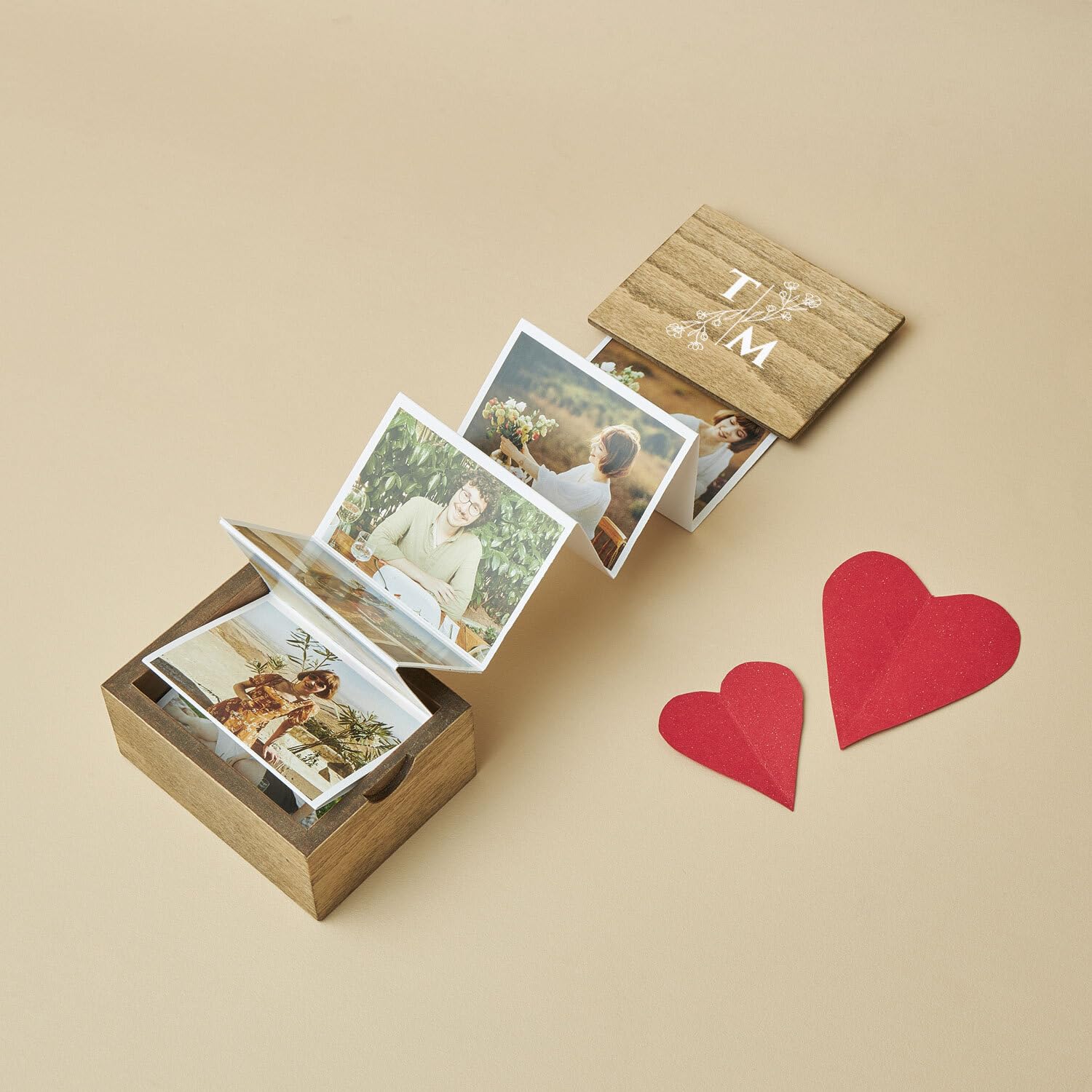 udelf Personalized Wooden Accordion Photo Box - Custom Photo Gift Great for Weddings, Valentine's Days, Anniversaries, and Special Milestones