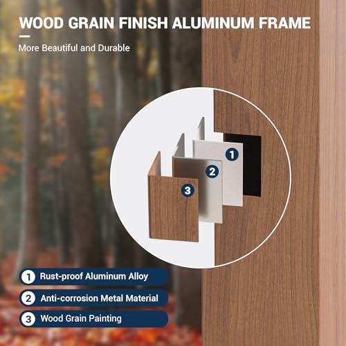 - WOOD GRAIN ALUMINUM FRAME: Wood powder coating makes the pergola's aluminum columns look like natural wood, giving it a natural feel but won't rot or crack like real wood. Aluminum frame is weather-resistant and prevents fading and rusting. The triangular structure and ground stakes add stability, making it ideal for outdoor use.