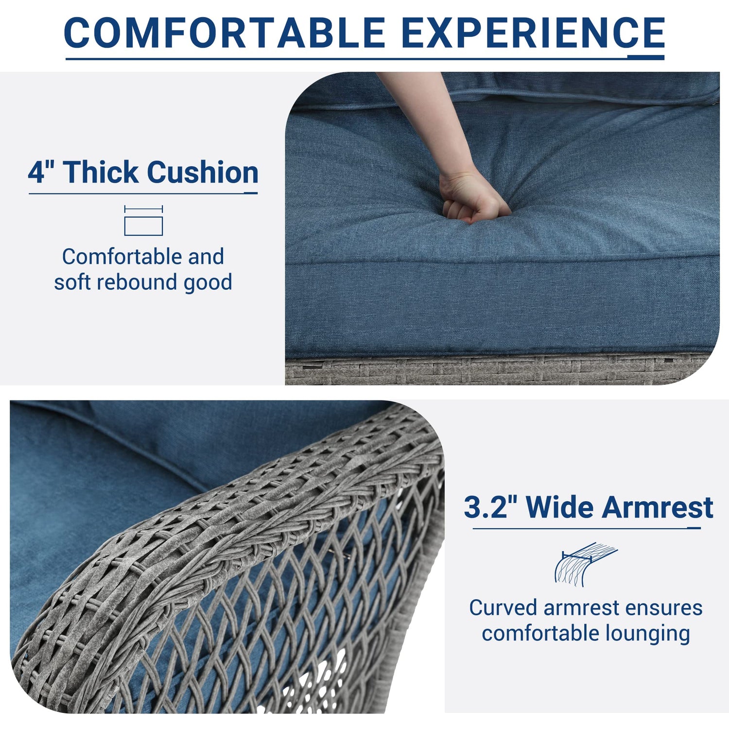 - 【4” Thick Resilience Sponge, Comfort Cushions】The rocker chair outdoor comes with 4” thick cushions give you better comfort for your whole body. The furniture cushions can be removeable and washable by the zipper as well. Enjoy worry free indoor outdoor life.
