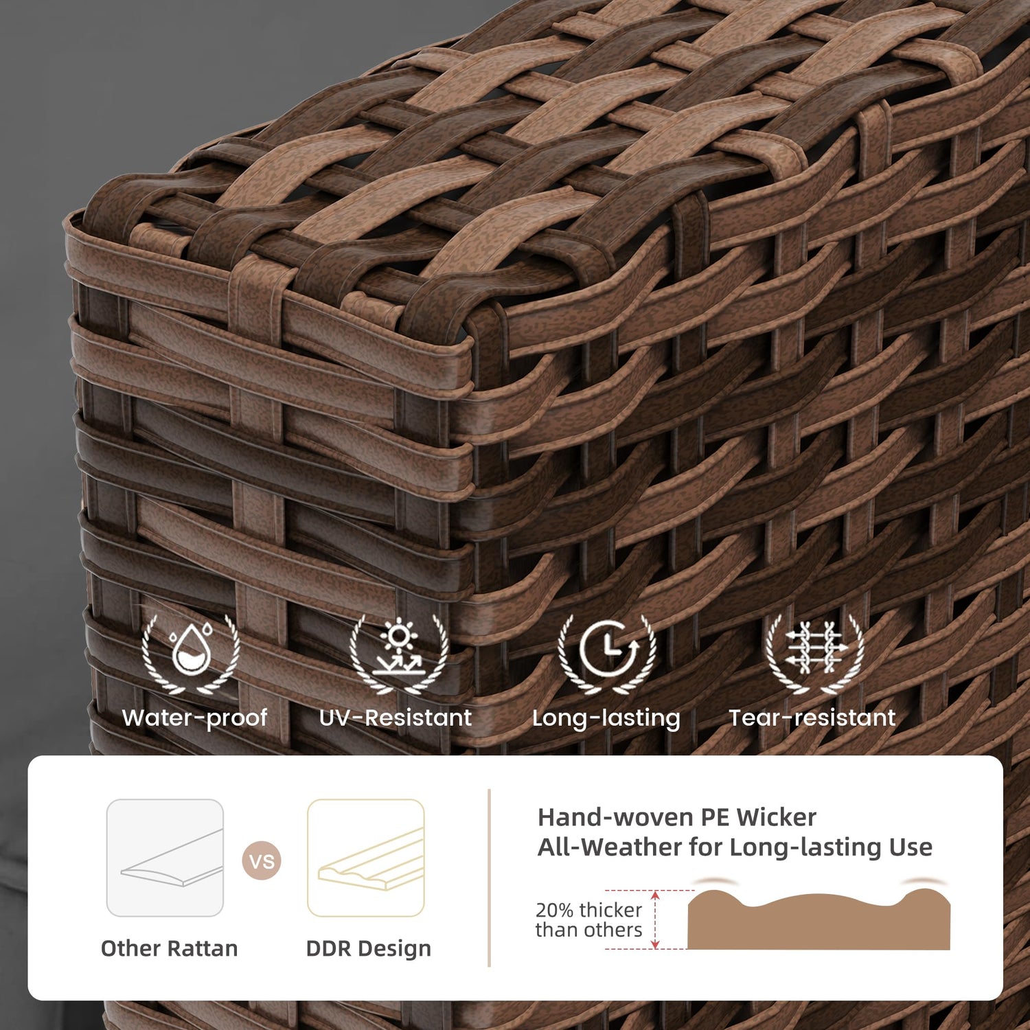 - Waterproof Covers for Prolong Survice Life: Each piece in the outdoor patio furniture sets comes with its individual waterproof cover (Except side table), unlike other products that only one large cover. This design eliminates the need to move the outdoor furniture around. The covers are made with a PVC coating to protect the furniture from rain, snow, and relentless sun, giving your a homey feel and prolong its life.