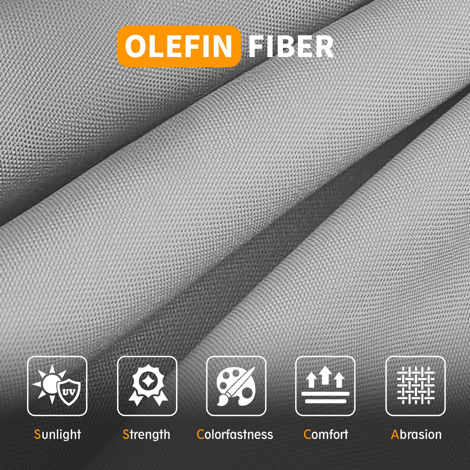 - Water-resistant Olefin Fabric: The patio furniture chair cushion material chosen is 240G Olefin fabric that are breathable and fade-resistant. In order to increase the practicality and protection of the outdoor patio furniture, each patio chair comes with waterproof covers