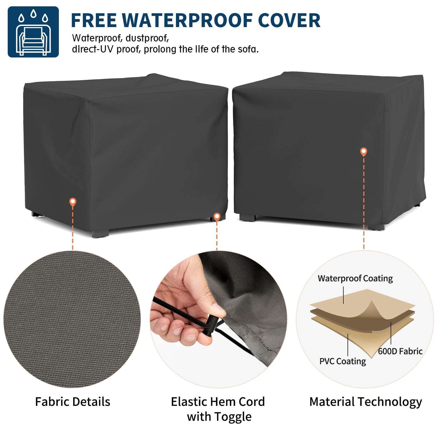 - Included Waterproof Cover: In order to increase the practicality and protection of the outdoor patio furniture, the patio couch comes with waterproof covers. The cover protects your patio furniture from rain, dust, dirt, and sunlight when not in use, preserving its quality and appearance over time.