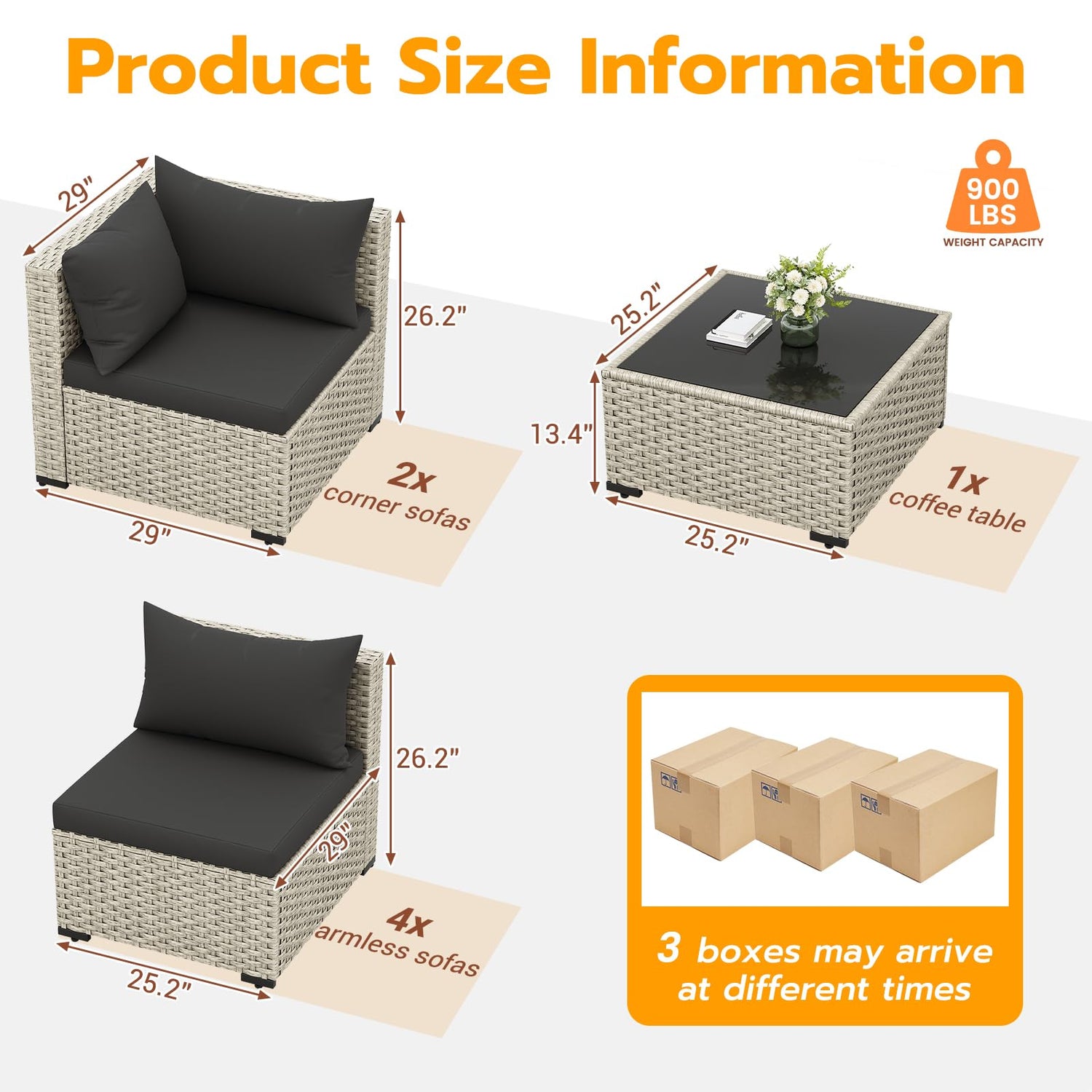 - Outdoor Sectional Furniture: 7 pieces rattan outdoor furniture set includes 2 corner sofas, 4 armless sofas, and 1 coffee table. Free to combine and match, perfect for poolside, patio, backyard, or lawn