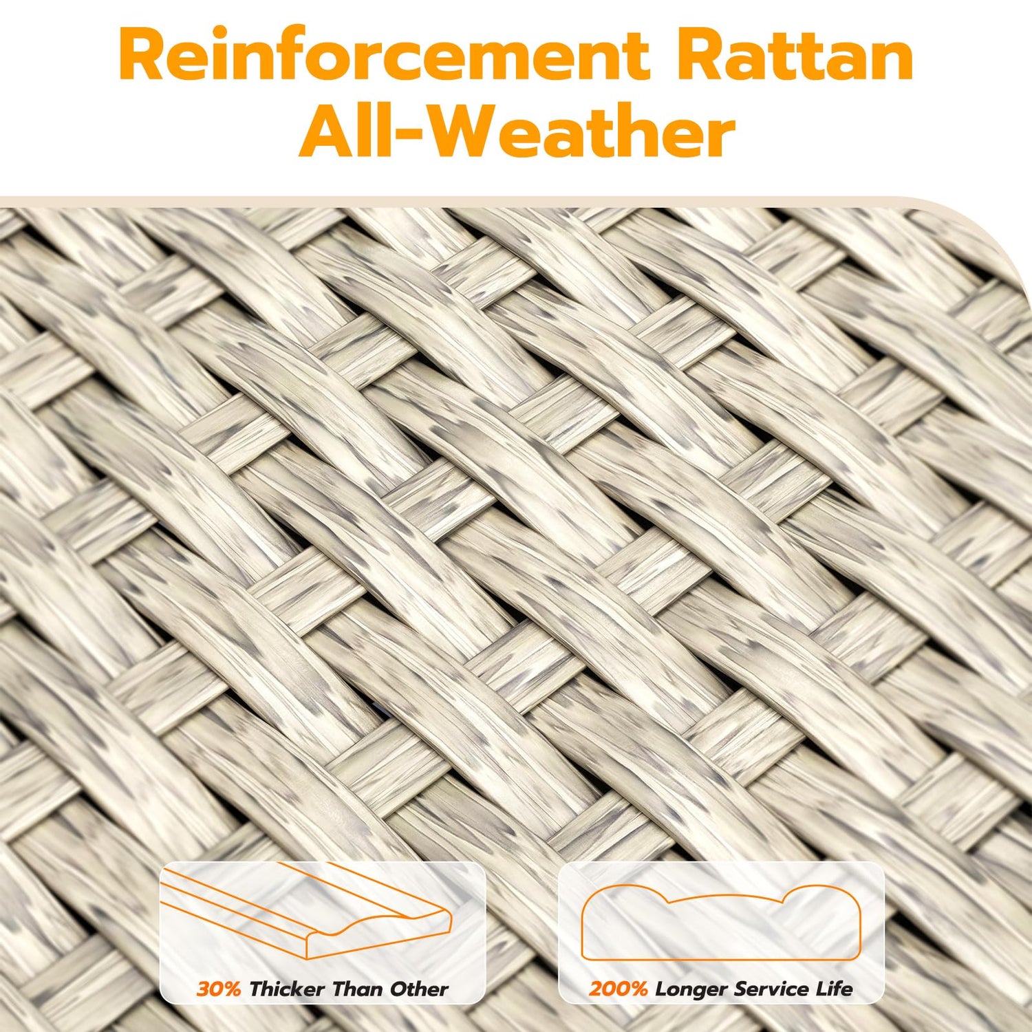 - Durable Material: Outdoor patio furniture sets are made of PE rattan wicker with strong steel frame which is resistant to rust and corrosion. PE resin wicker rattan is UV resistant and waterproof