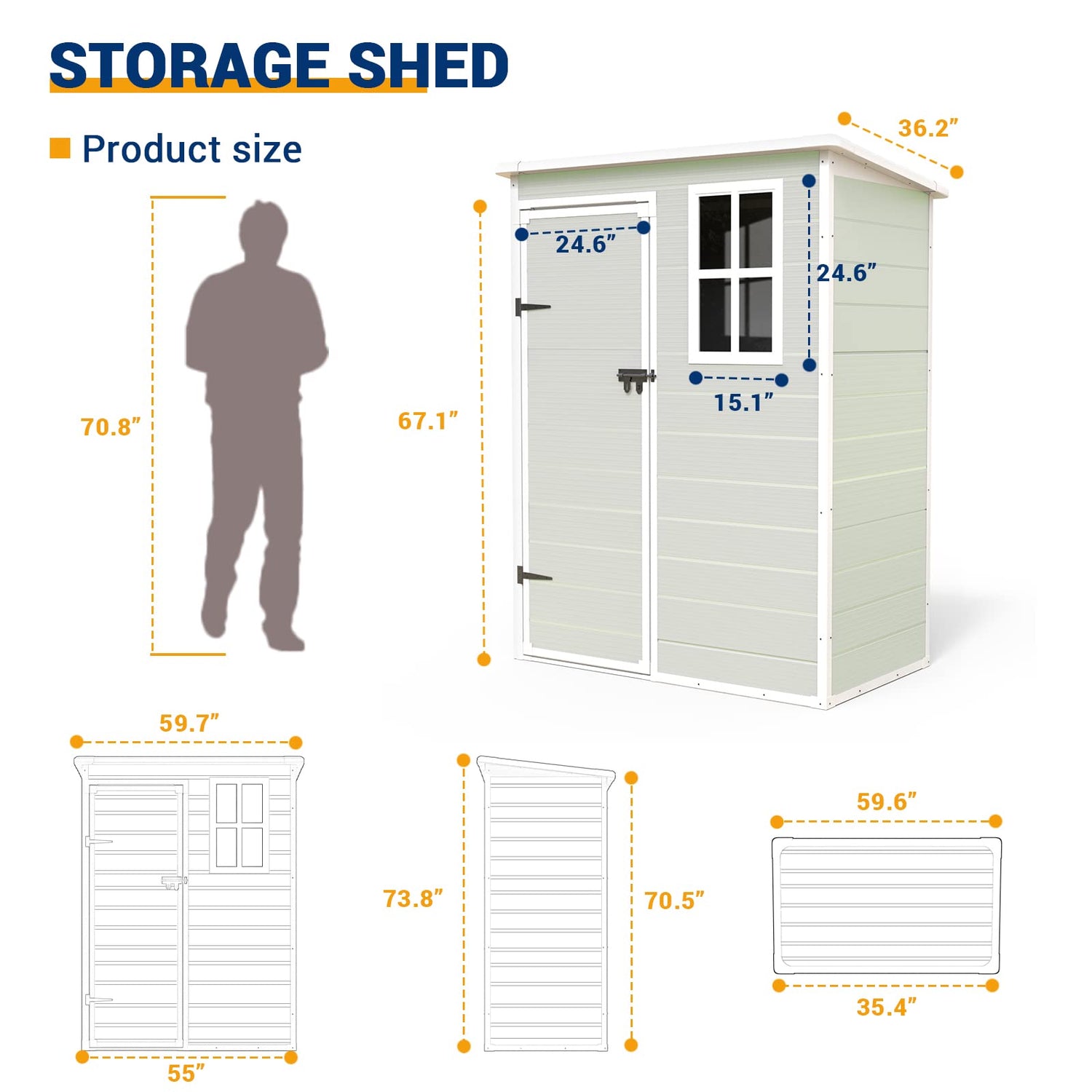 UDPATIO Outdoor Storage Shed 5x3 FT, Resin Garden Shed for Bike, Garbage Can, Tool, Plastic Outside Sheds & Outdoor Storage Storage Box with Lockable Door for Backyard, Patio, Lawn, Sandstone