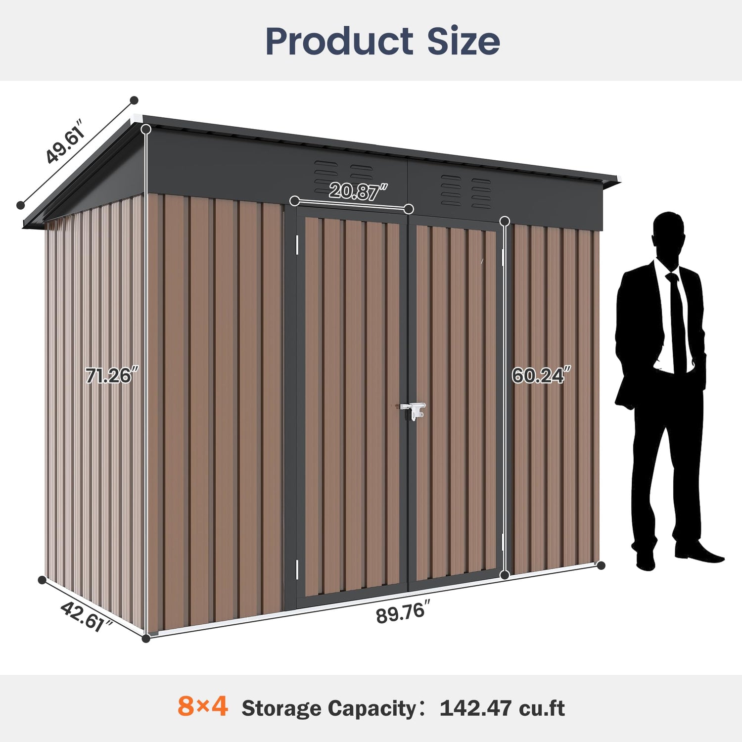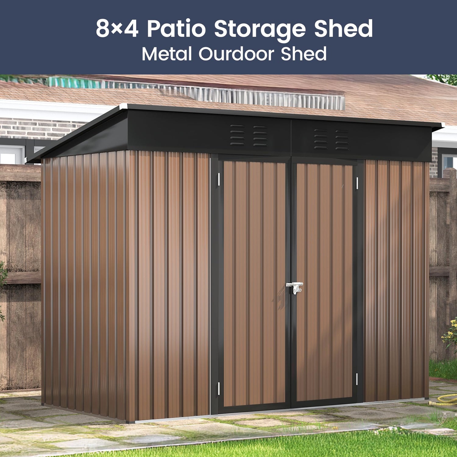 UDPATIO Outdoor Storage Shed 8x4 FT, Outside Sheds & Outdoor Storage Metal Galvanized Steel Yard, Patio, Lawn, Tool Shed with Lockable Door for Can, Bike, Lawnmower, Generator,Brown