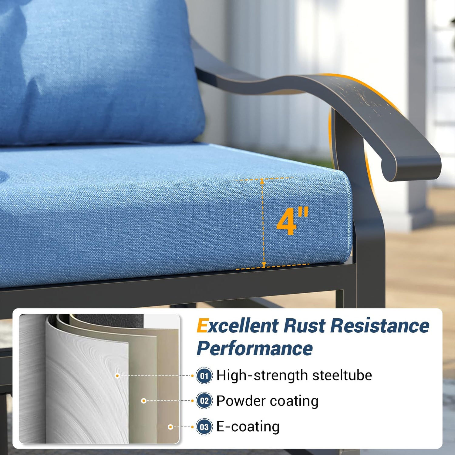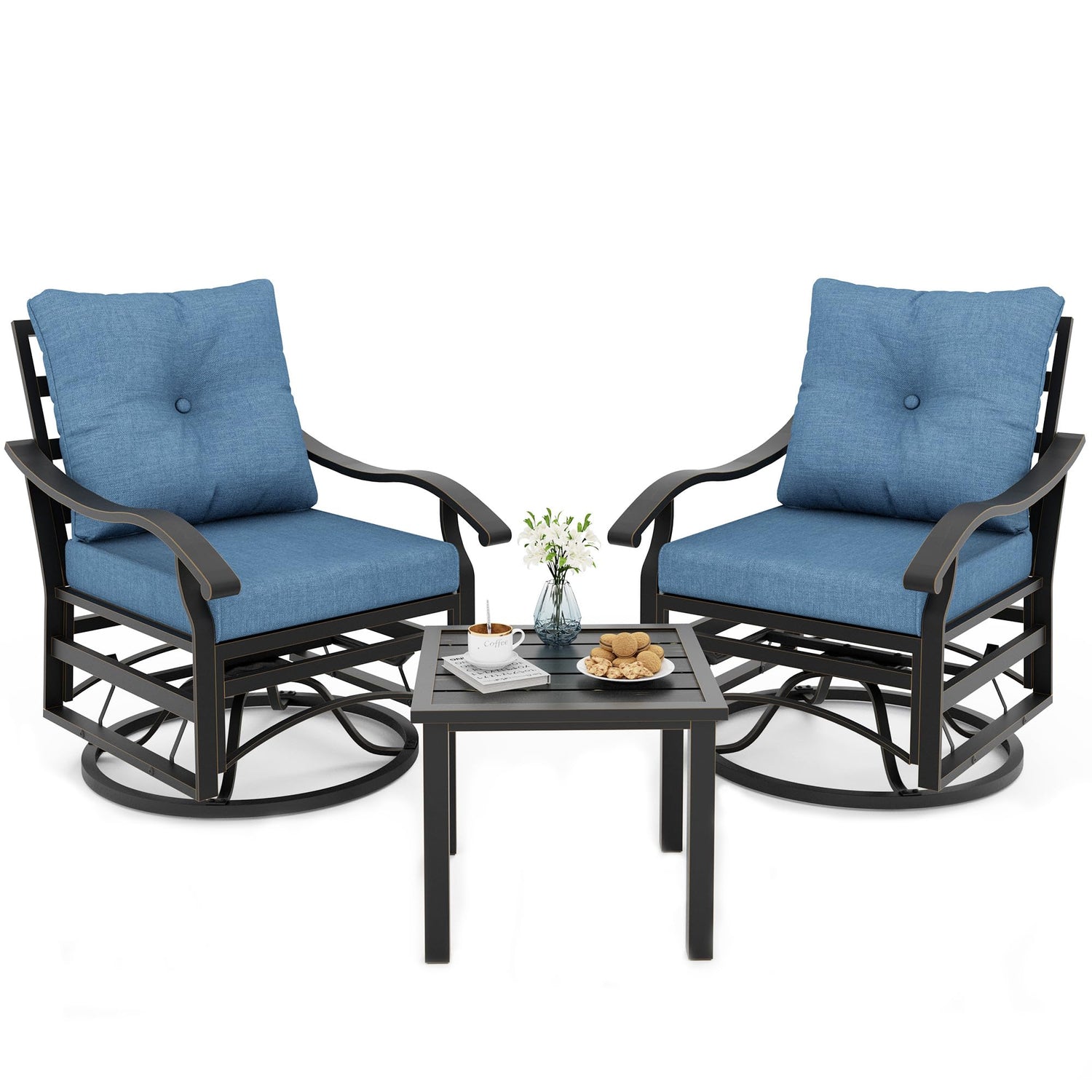UDPATIO Outdoor Swivel Rocker Chairs, 3 Piece Metal Patio Rocking Chairs with Blue Padded Cushions Patio Bistro Furniture Set with Side Table for Porch Balcony Backyard, Blue