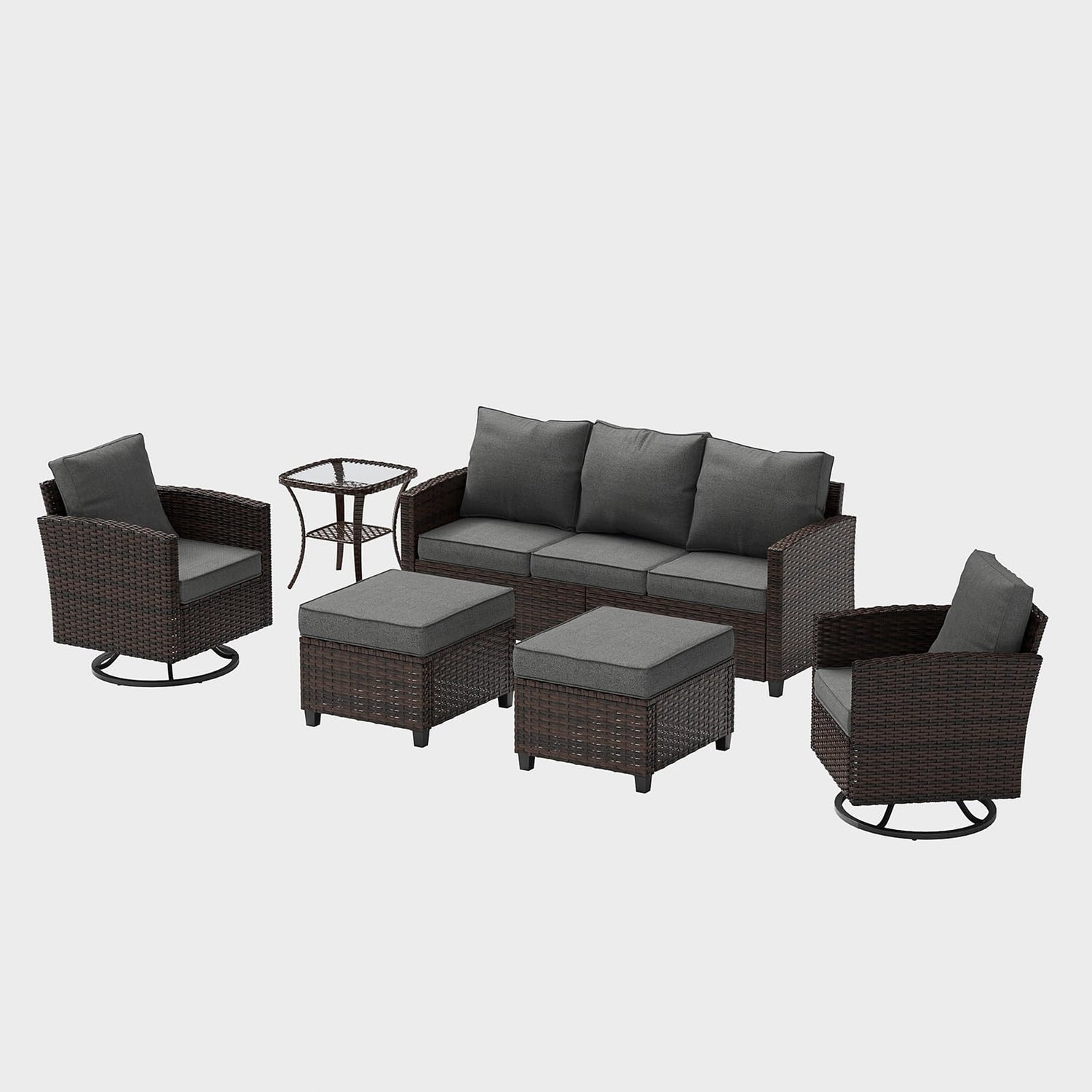 - 360° Swivel And Rocker Chair:This outdoor furniture set features a new and upgraded modern swivel chair with a double-function circular base that allows you to slide and rotate 360 degrees gently. It also rocks slightly back and forth, helping to relieve fatigue and stress better