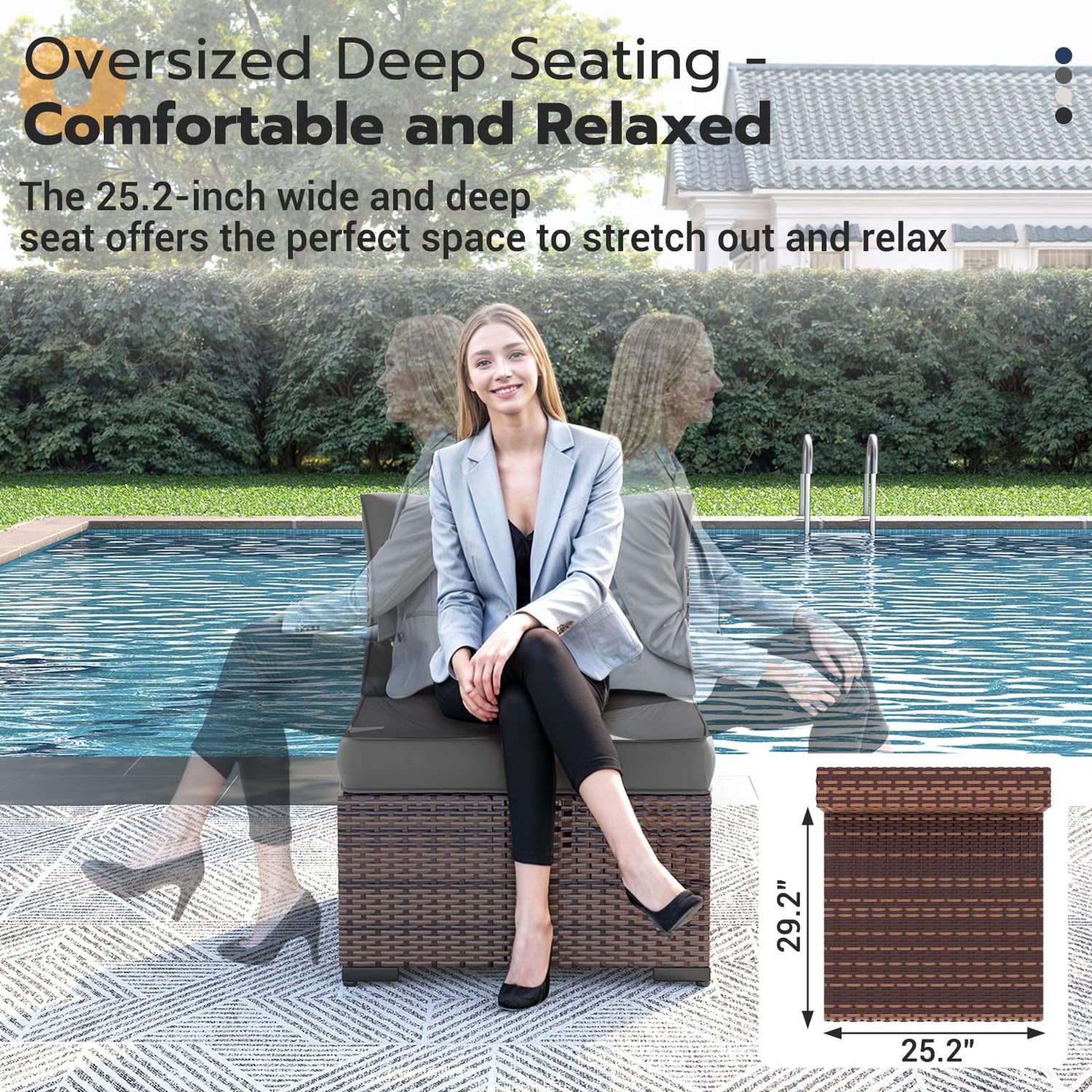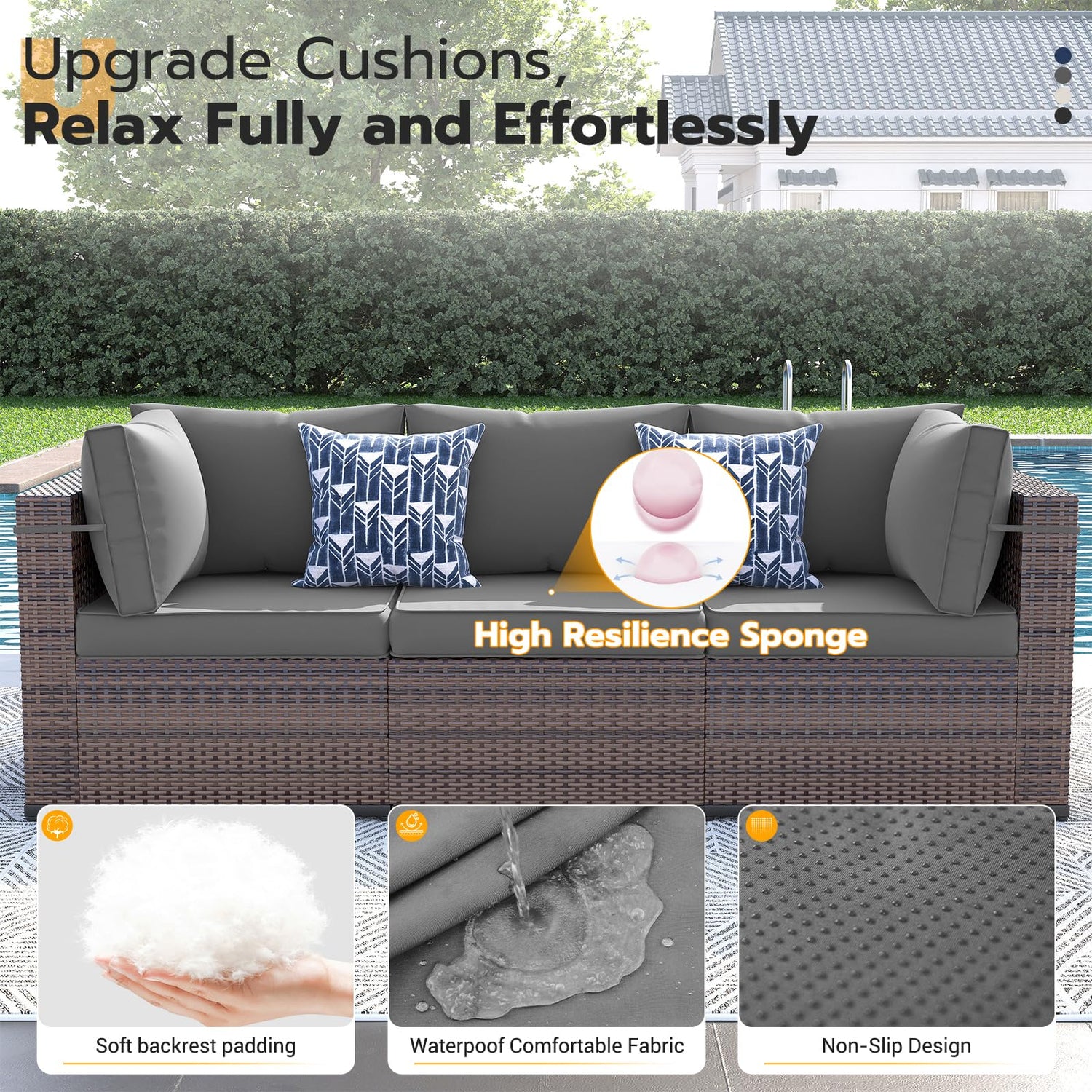 - Cushions for Ultimate Comfort: The 4" high-density foam seat cushion provides firm yet cozy support, while the well-filled back cushion offers a plush, cloud-like feel. Non-slip granules and tie straps keep them securely in place. Wrapped in durable 220D waterproof, fade-resistant fabric, these cushions withstand the elements while staying soft and stylish.