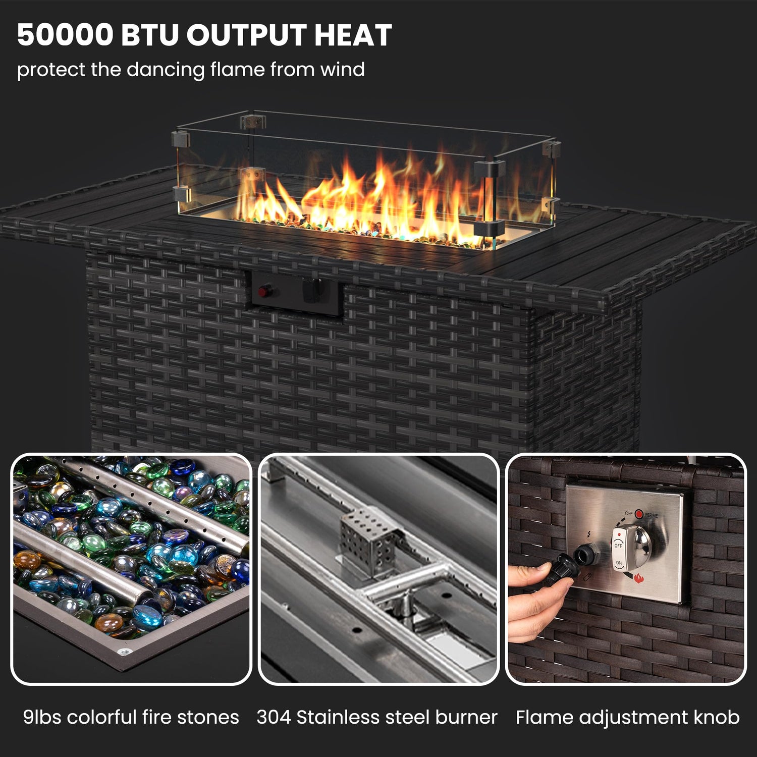 UDPATIO Patio Furniture Sets with Fire Pit Table, Modular Rattan Outdoor Conversation Patio Sectional Furniture Sofa Set for Backyard, Deck w/Coffee Table, 8PC Brown/Red (Include Sofa Cover)