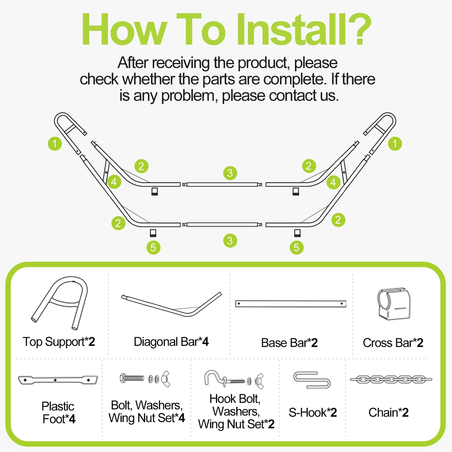 - SUPPORT : If you encounter any issues with the hammock stand you receive, or experience any problems during use, please contact us. We will try our best to resolve the issues