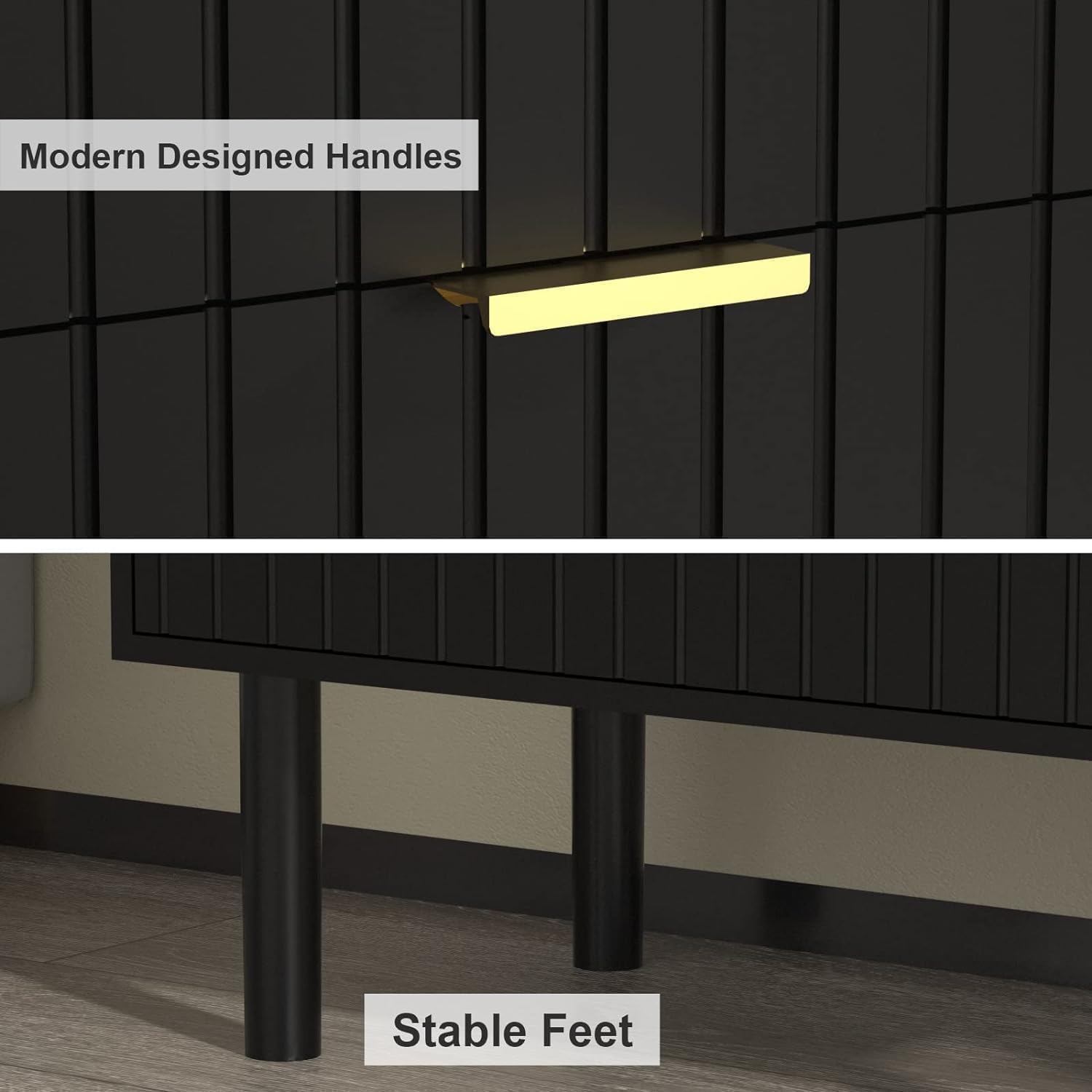 UEV Black 6 Drawer Dresser and Nightstand Sets for Bedroom,Marble Texture Top Modern Dresser and Fluted Night Stand Set of 2 Comb 3 Pieces