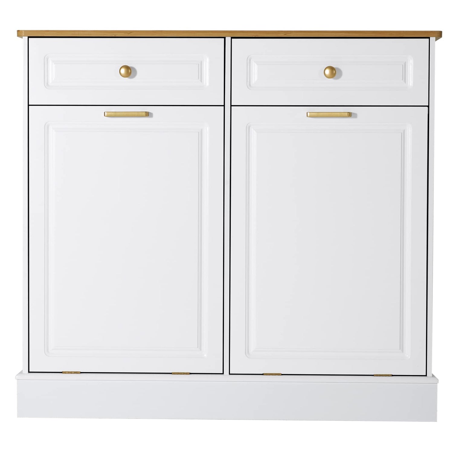 UEV Double Kitchen Trash Cabinets,Two Tilt Out Trash Cabinets with Solid Hideaway Drawers,Free Standing Wooden Kitchen Trash Can Recycling Cabinet Trash Can Holder (White)