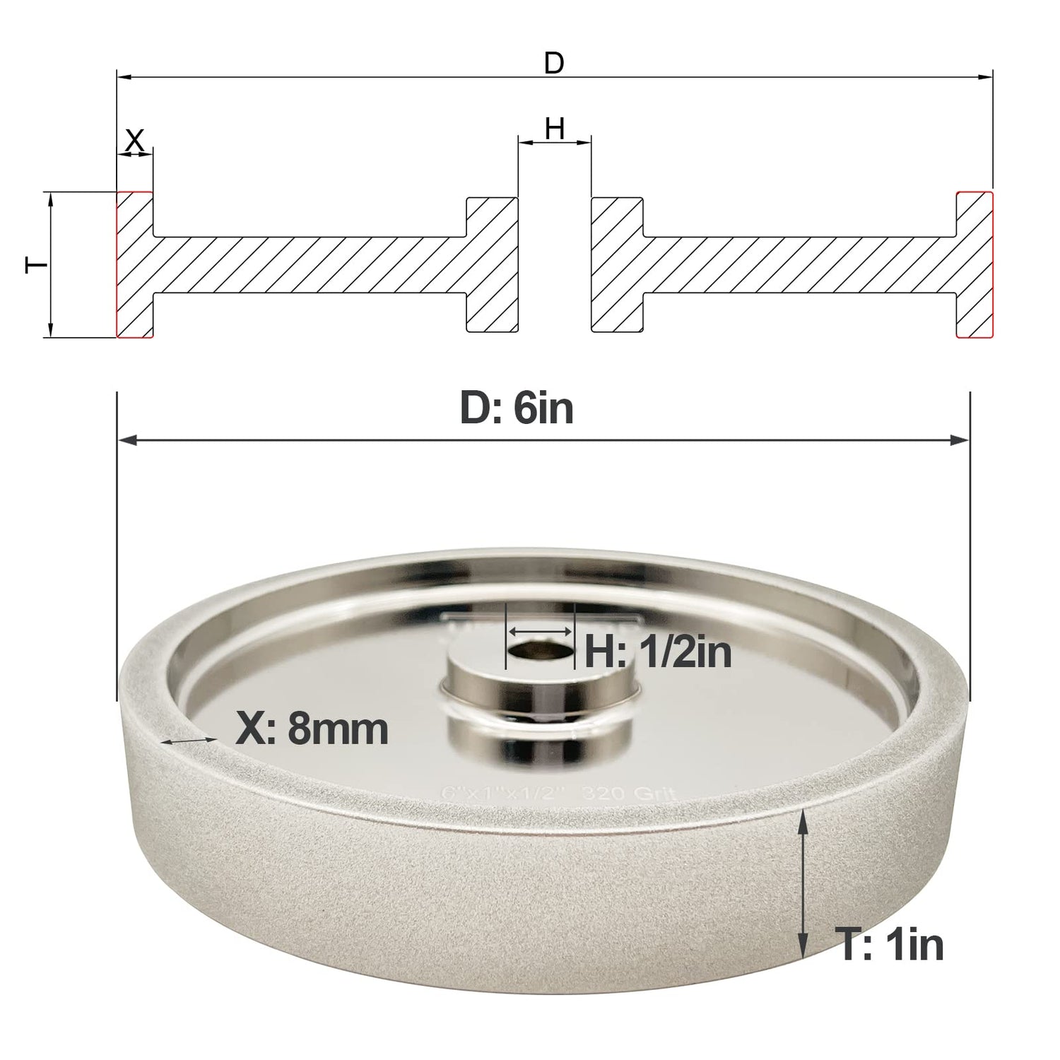 - 【Size】Diameter: 6 Inch, Arbor Hole: 1/2 Inch, Thickness: 1 Inch, Grit 320.
