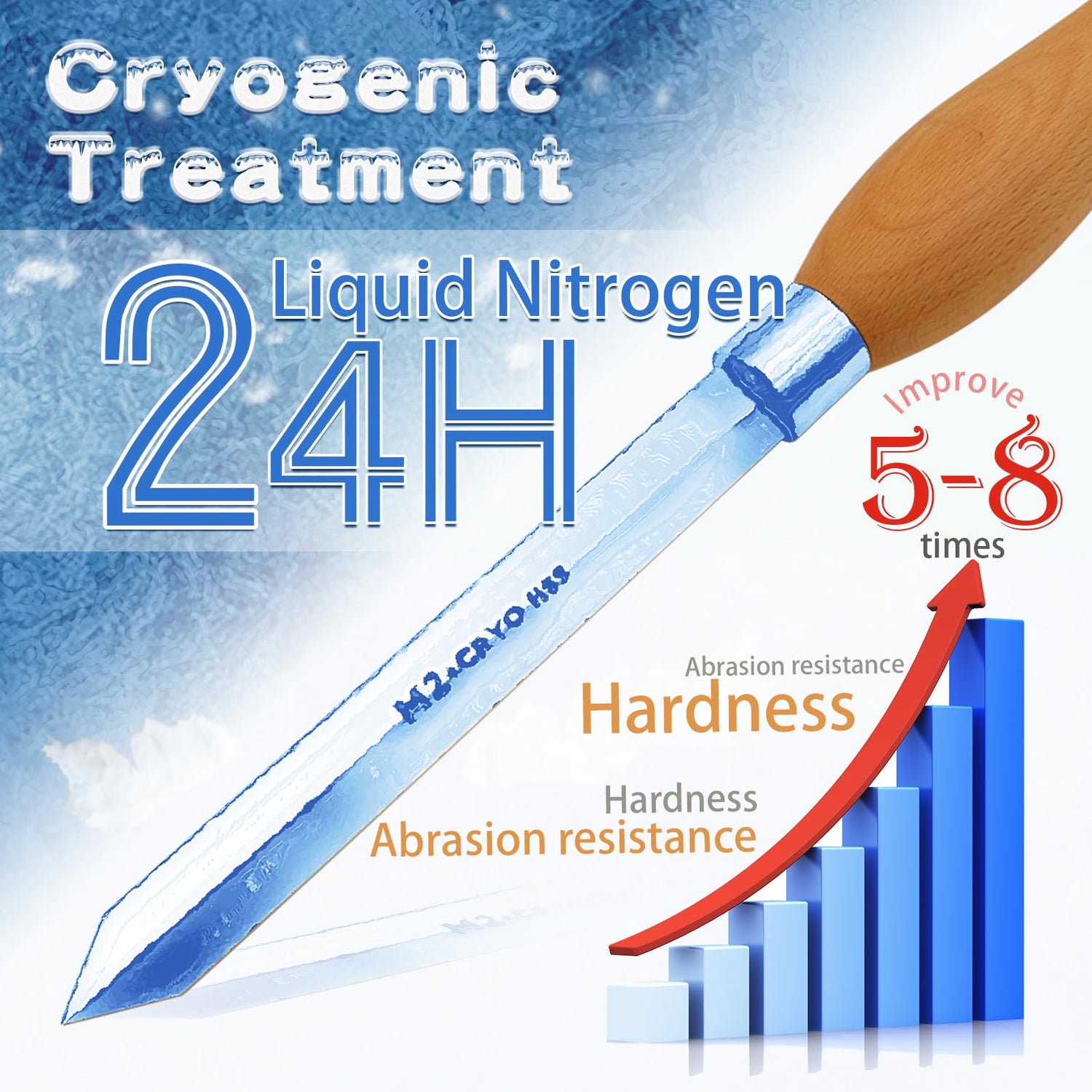 - More Durable: M2 HSS is cryogenically treated, the hardness and wear resistance are increased by 6-8 times, can longer hold an edge well
