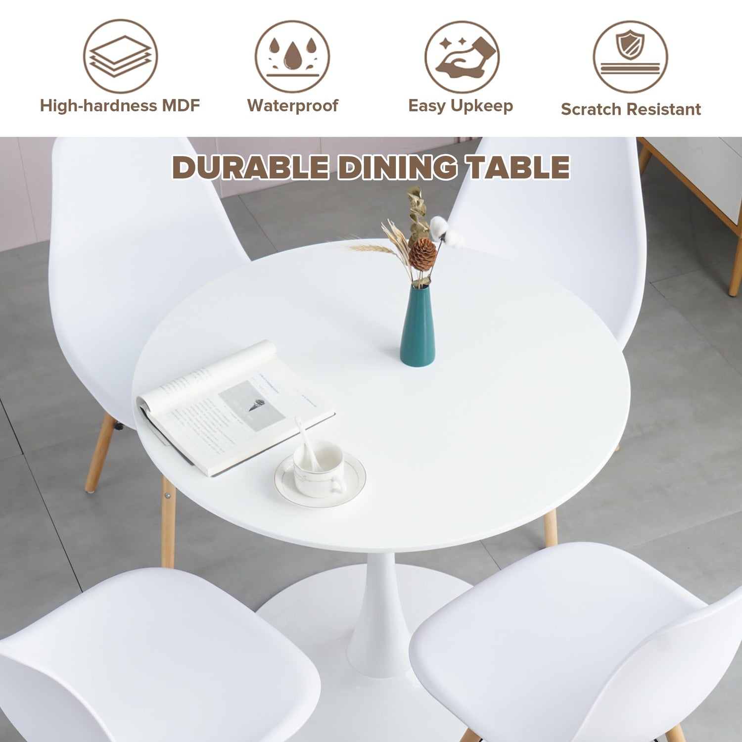Ufurpie Round Dining Table Set for 4, 5-Piece Farmhouse Dining Table with 4 Chairs for Dining Room & Coffee Shop & Small Spaces