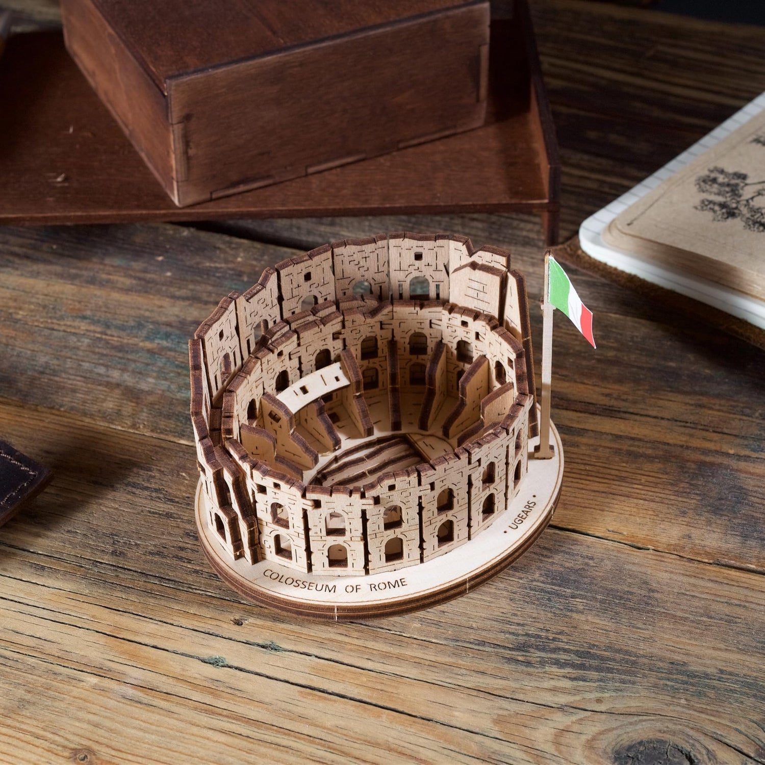 UGEARS Wooden 3D Puzzle Rome Colosseum Model Kit DIY Miniature Craft for Adults Italy Cities Collection 63 Pcs