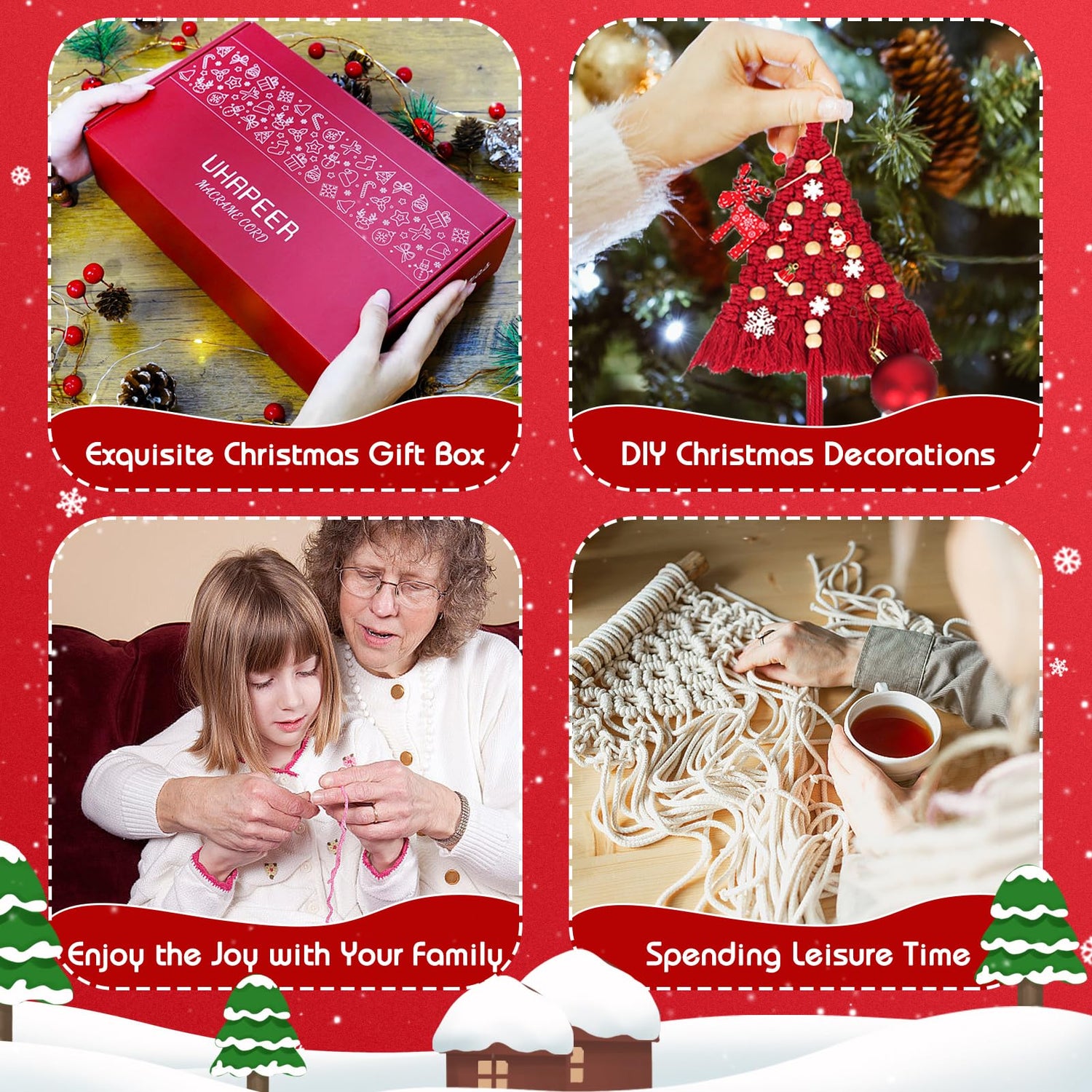 UHAPEER 137PCS Macrame Kits for Adults Beginners DIY Macrame Christmas Tree and Boho Macrame Supplies with 3 mm Macrame Cord Cotton Beads Xmas Ornaments Christmas Decorations Gifts Wall Hanging
