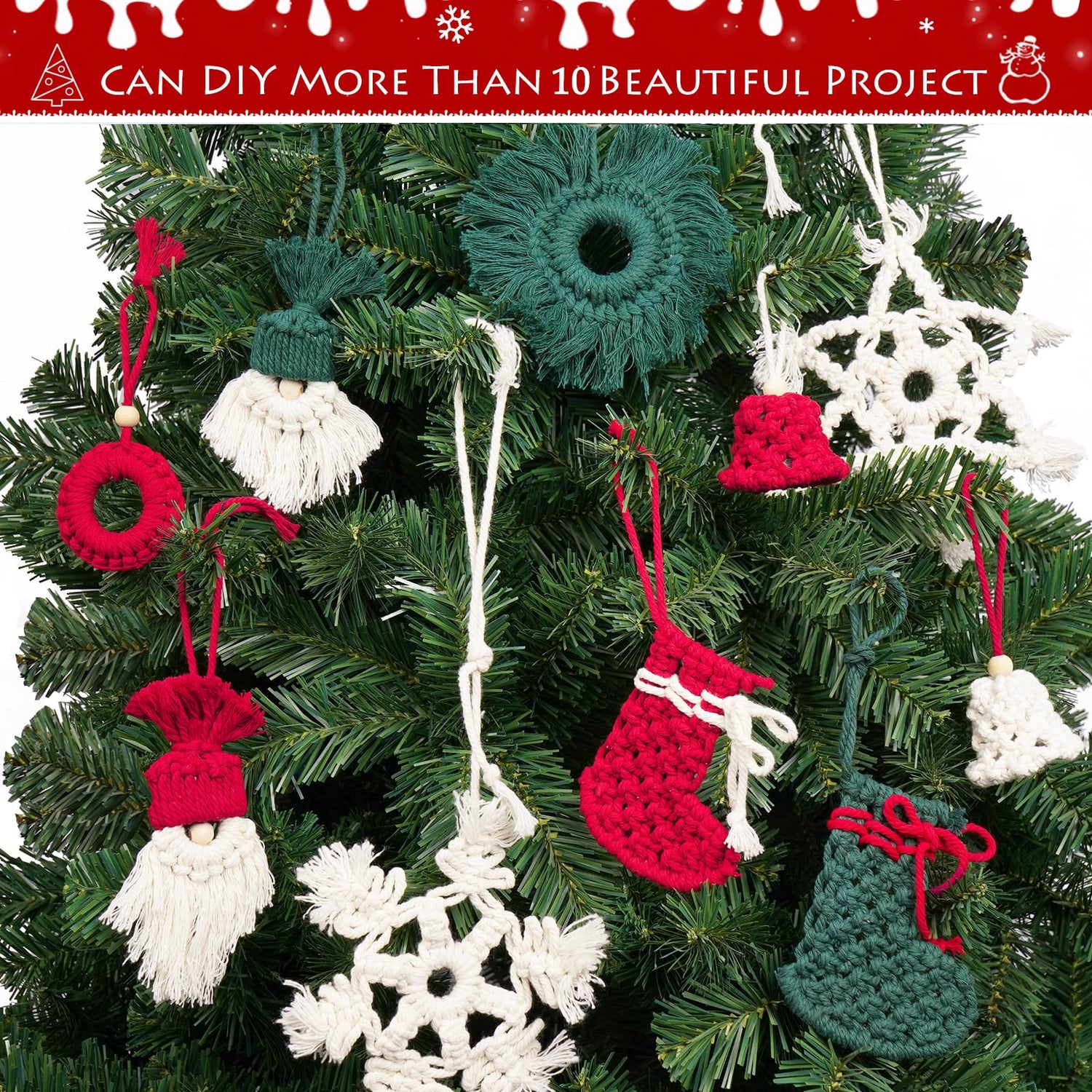 - 【Complete Festival Macrame Kit for Beginners】This macrame set contains complete materials to create your own macramé Christmas hanging decoration: 3 mm 3-strand stranded cord (white 50 m, red 50 m, green 50 m), 20 wooden beads, 20 Christmas colour wooden beads, 10 wooden rings, 2 wooden sticks, 2 wooden pendants, 8 bells, 16 mini ornaments, 3 Christmas balls, 1 manual, 1 hot glue stick, 50 open jump rings, 1 Christmas gift box.