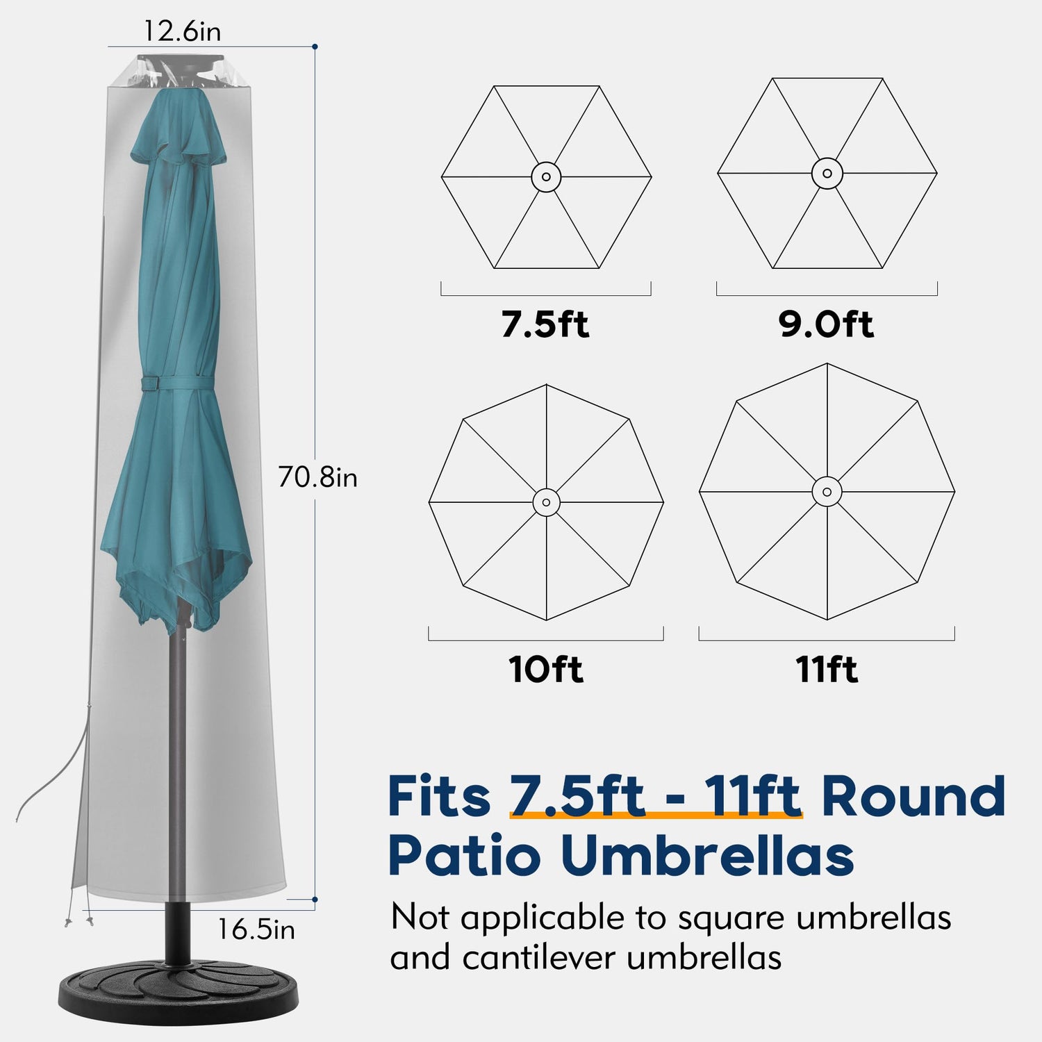 - [HIGH-QUALITY MATERIALS] The outdoor umbrella cover is made of 420D Oxford cloth polyester composite material, with UV coating and internal and external waterproof coating added on the surface, and a waterproof zipper design. No matter how bad the rain and snow weather is, your umbrella will get comprehensive waterproof protection.