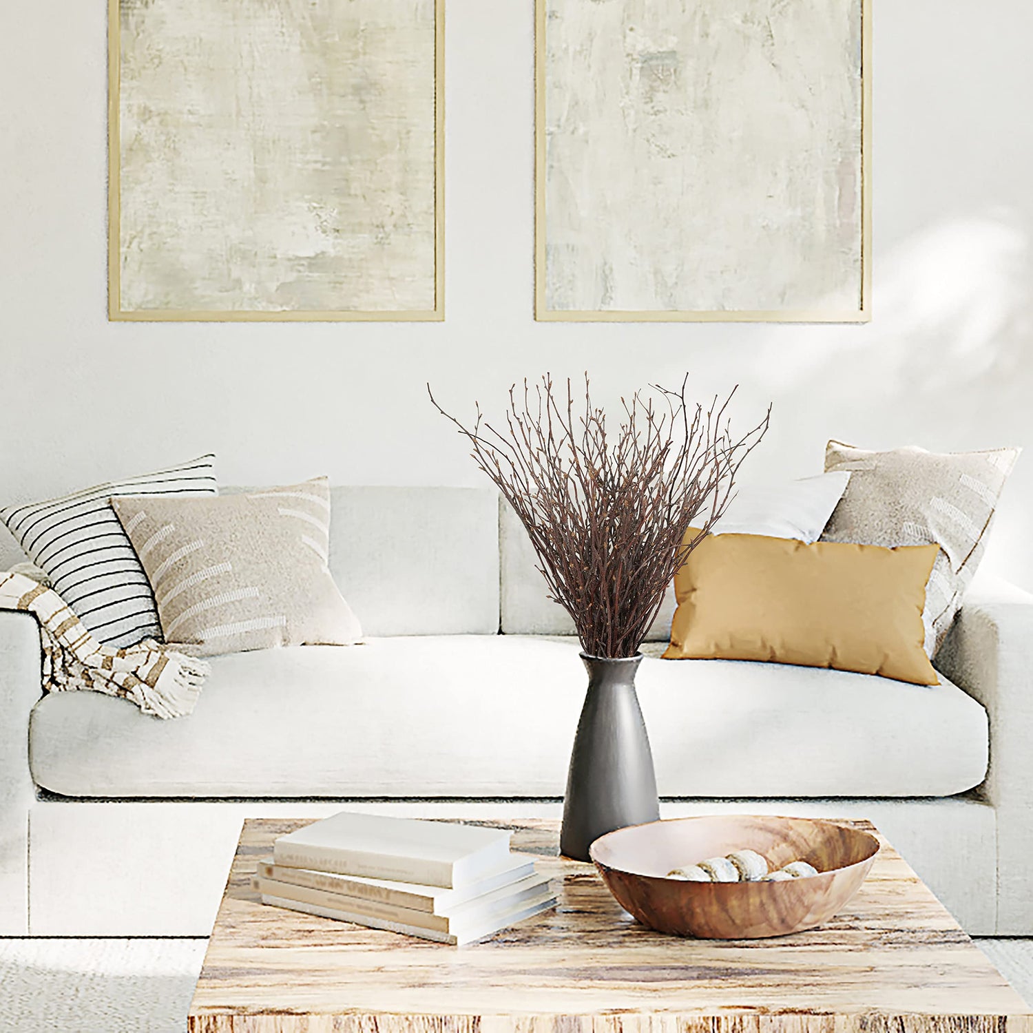 - 100% NATURAL BIRCH DECORATIVE STICKS. Our birch branches for vase are sourced from real birch tree and dried to perfection, bringing a rustic touch to any arrangement! These decorative branches are 17 inches long, have the perfect natural look and even the real fragrance of wood. They can fit tall vases and are trimmable, so you can use them on smaller vases too