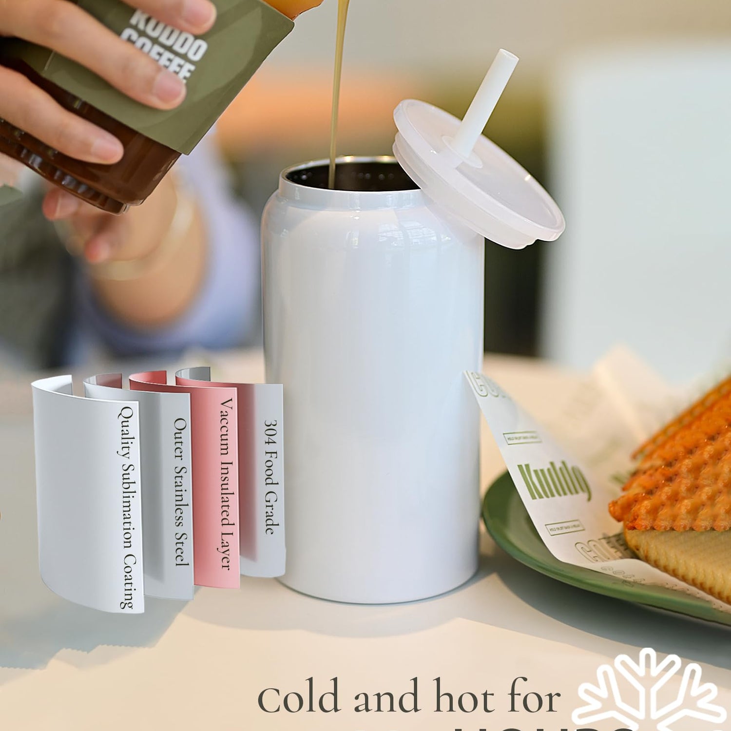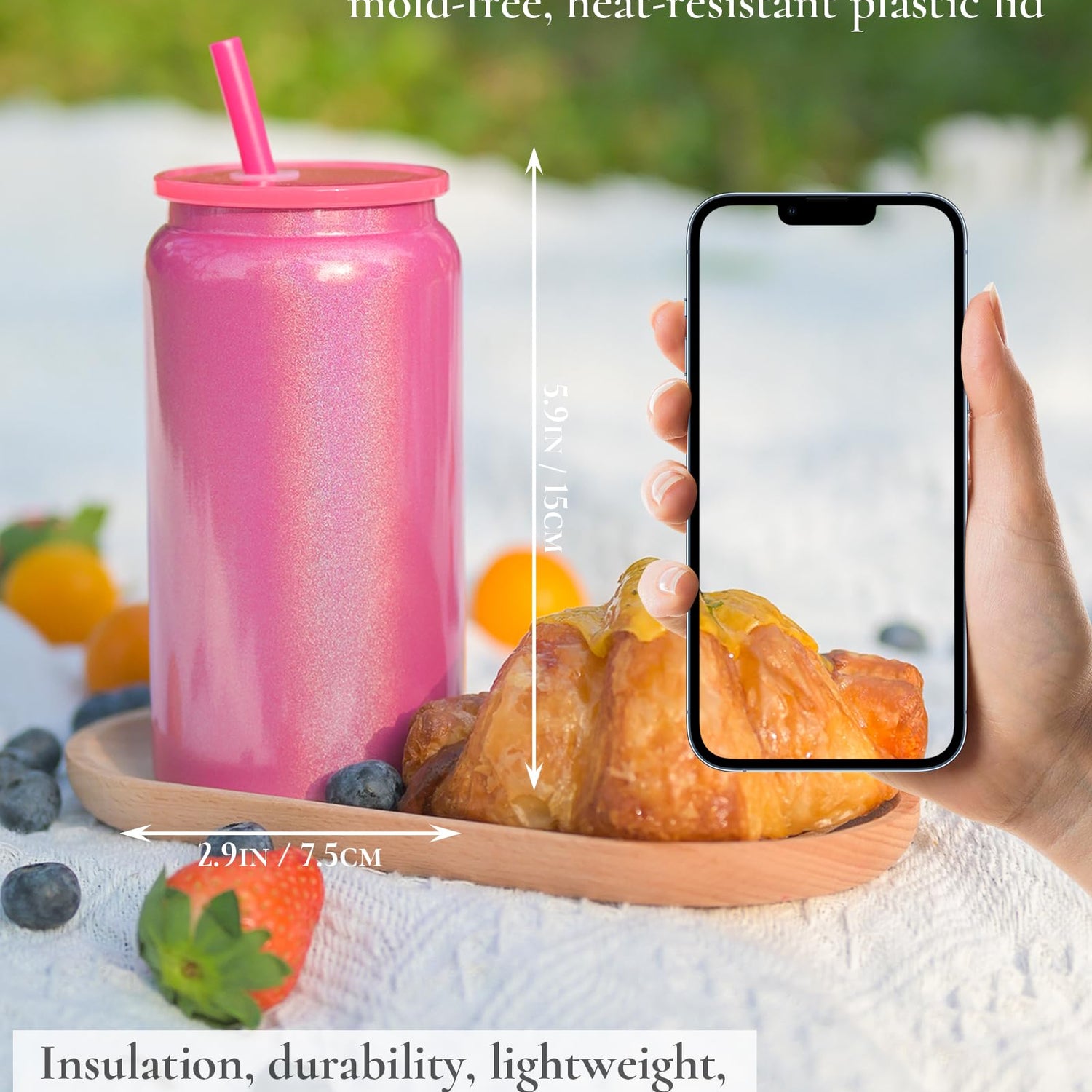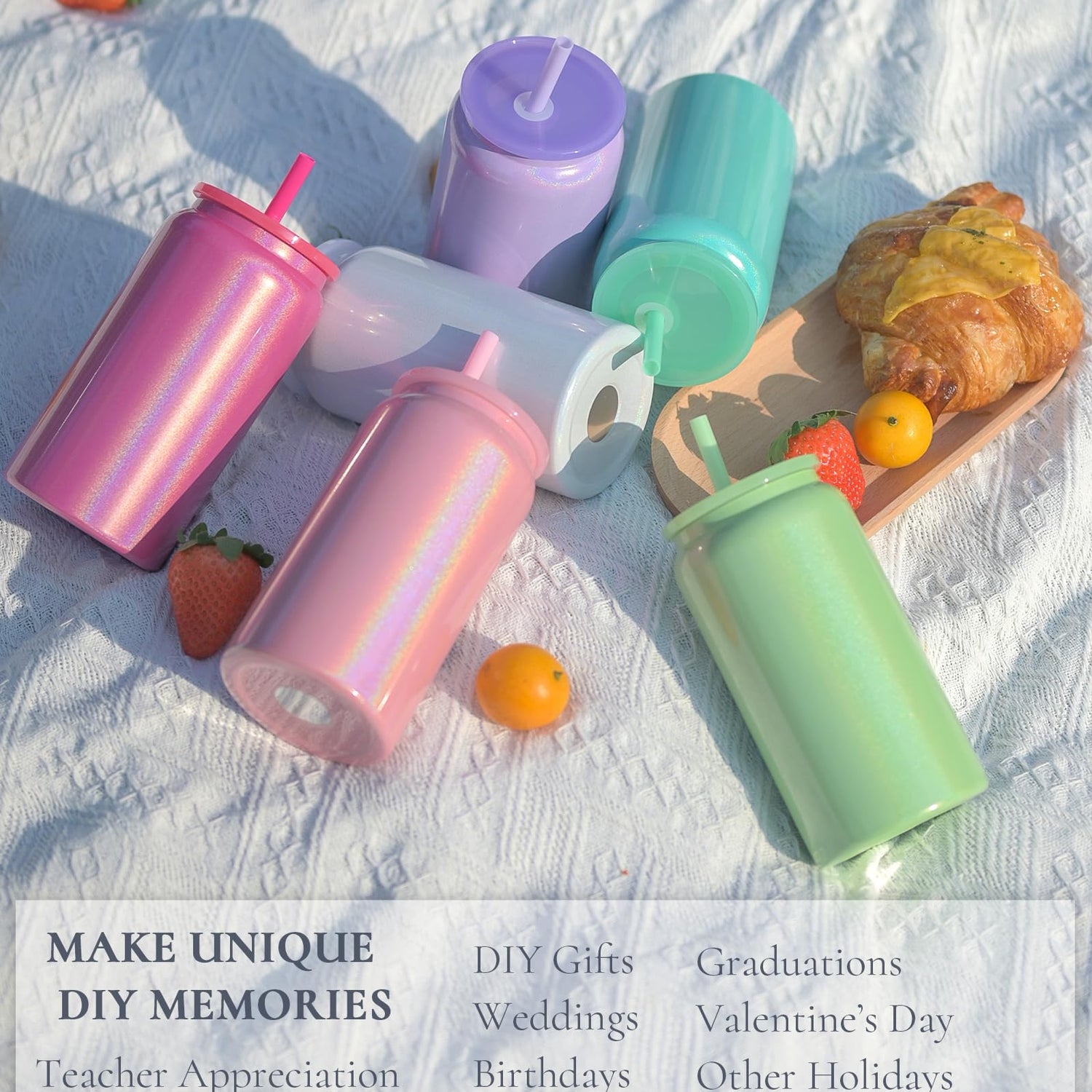 - 【Safe Materials】: These glass tumblers with straws and lids are made from premium 304 stainless steel. The surface features a pearlized glossy finish, achieved through a multi-step coating process. This makes them shiny and attractive, suitable for sublimation.