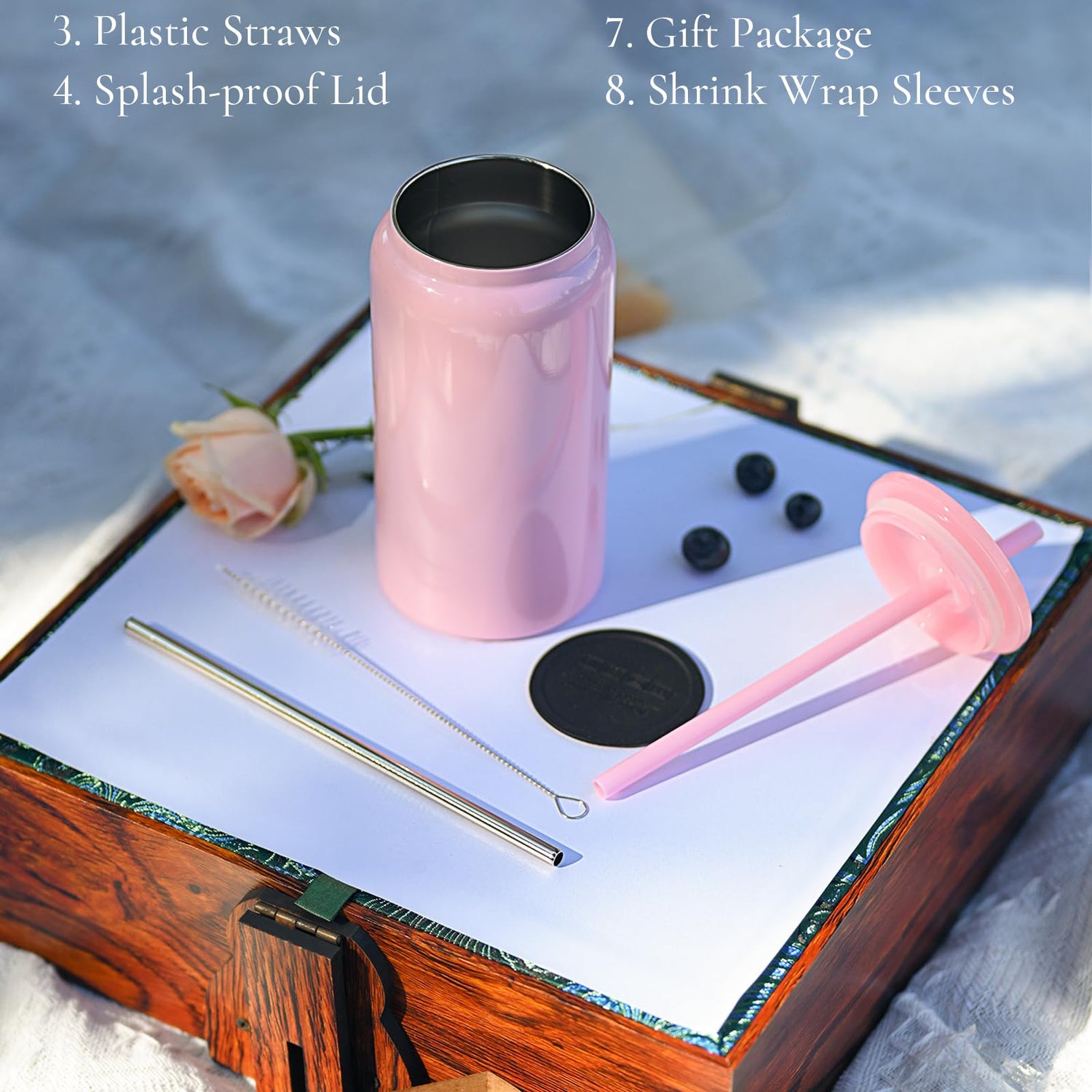 - 【Included Items】: 304 stainless steel cups, plastic lids, plastic straws, 304 stainless steel straws, cleaning brushes, non-slip silicone pads, shrink wraps, and box packages.