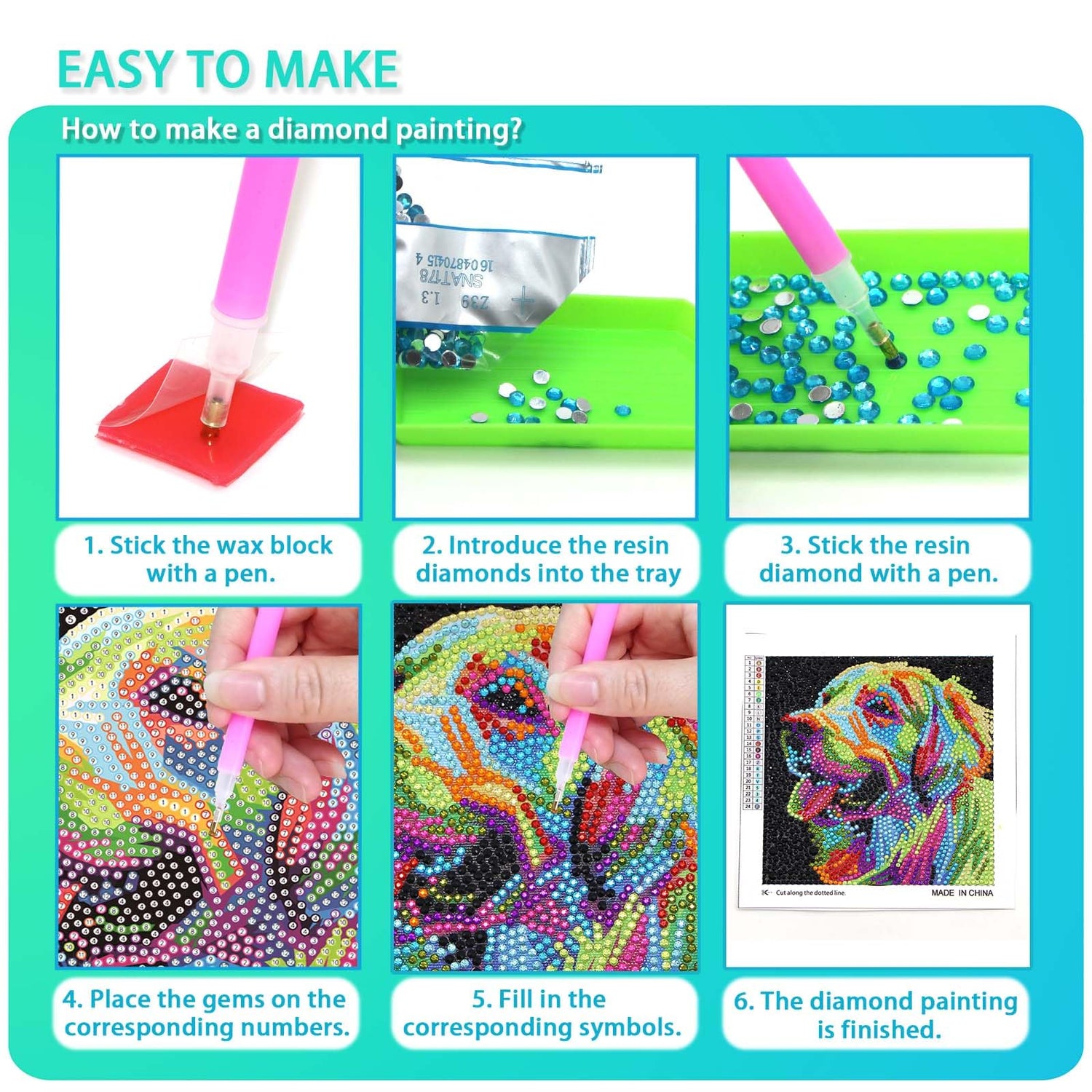 - EASY TO MAKE:Small diamond art canvas (length and width dimensions are about 6 inches), our kit is easier to complete than traditional diamond painting. Great for kids, beginners, diamond art lovers