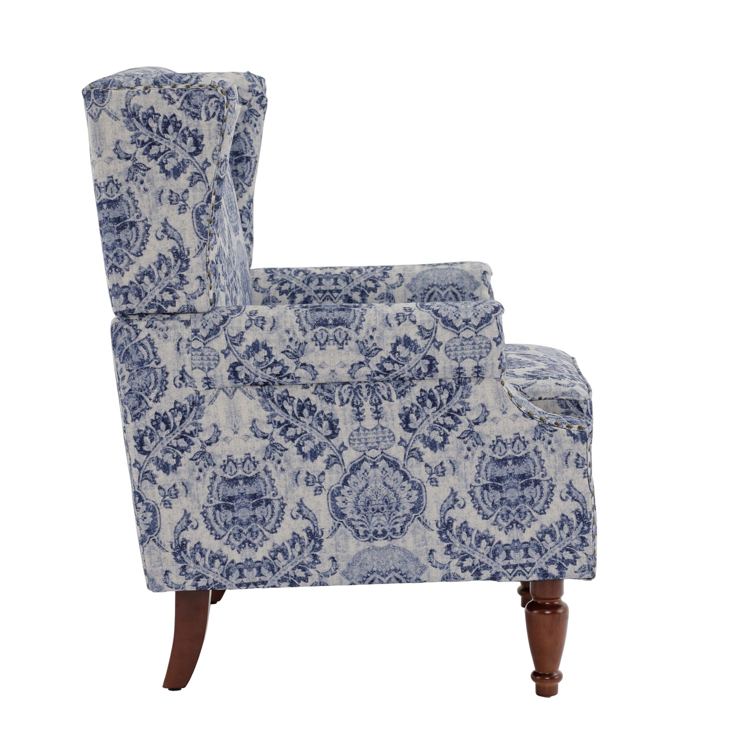 - Attractive Printed Pattern Chair - This armchair features nailhead trim, rolled armrests, vintage wooden legs and a beautiful patterned design for a traditional and chic look. Ideal for waiting room, living room, bedroom, dressing room, dressing room, office, reception room.