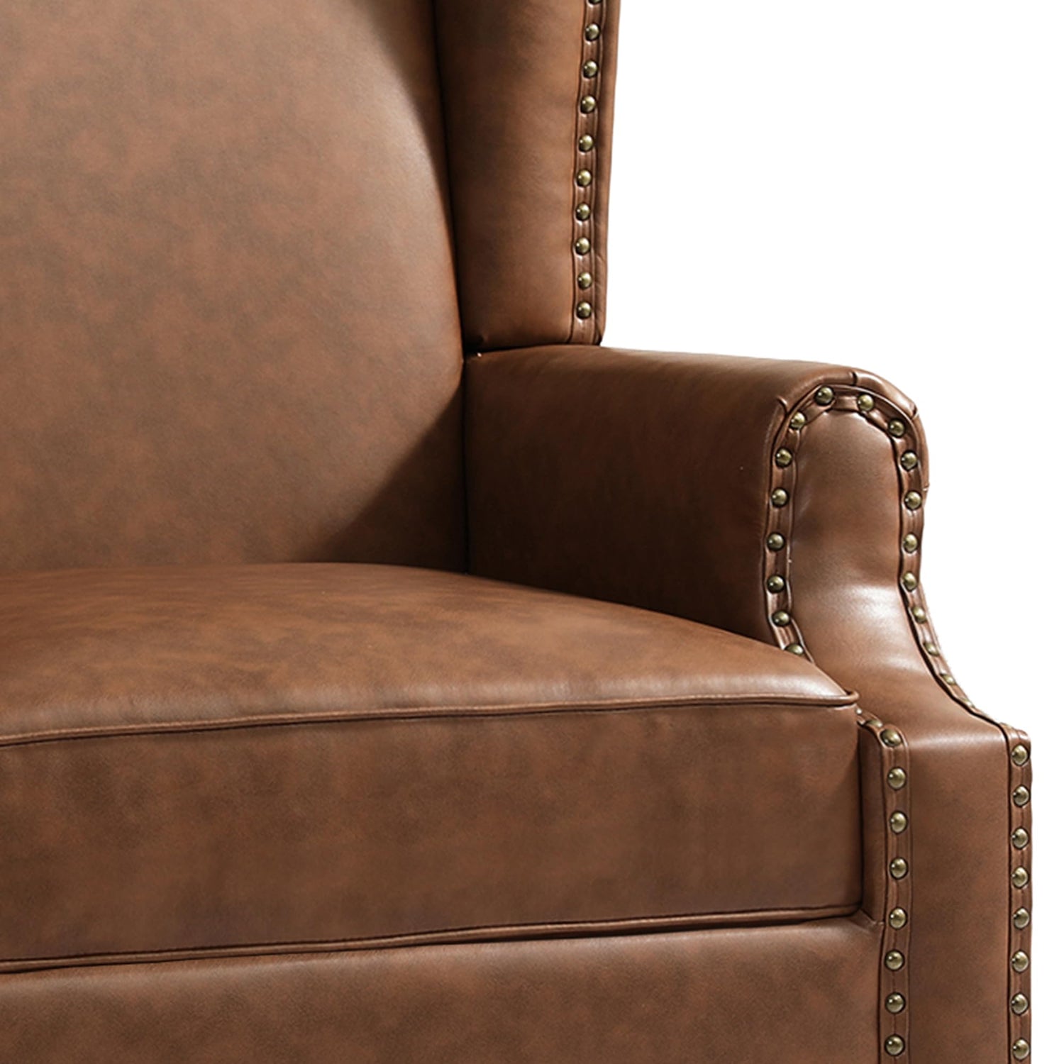 UIXE PU Leather High Back Accent Chair, Upholstered Armchair for Living Room, Retro Wingback Arm Chair Nailhead Trim Single Sofa Bedroom Reading Seat with Solid Wood Legs - Brown