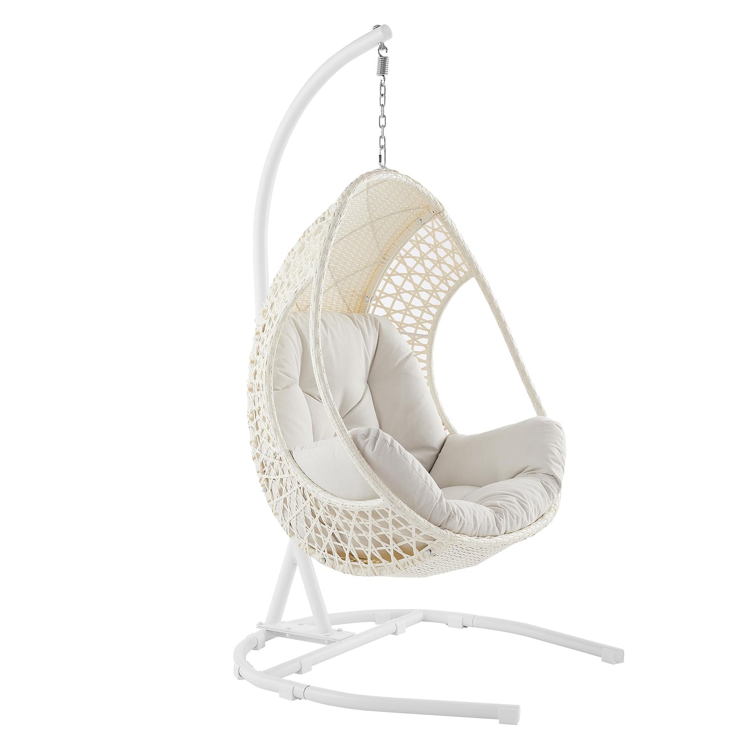 Ulax Furniture Hanging Egg Chair, Wicker Rattan Swing Hammock Chair with White Stand and Beige Cushion for Indoor Outdoor