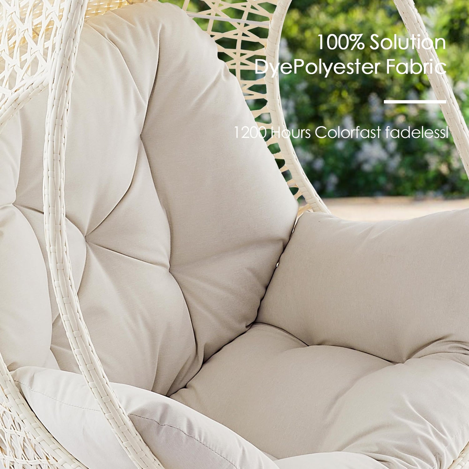 - 【Sturdy Frame】The swing egg chair constructed with durable powder-coated steel frame and all-weather synthetic beige wicker, which is easy to clean and dry, making it very suitable for outdoor use.